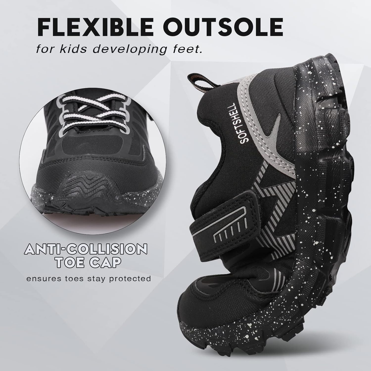 Deep flex grooves and lugs on the outsole for superior traction to perfectly handle some outdoor rugged hiking or all-terrain, let boys run and play safer.Lightweight rubber outsole offers excellent wear resistance,which is best choice for active boys in all season for their daily walking, running, outdoor hiking, school wearing, and daily sporting etc.