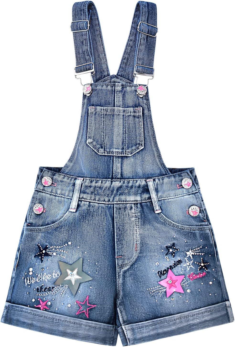 2-11T Little&Big Kids Girls Jumpsuit&Rompers Bib Overalls Colorful Tie-dye Shortalls Suspender Shorts Jeans Pants