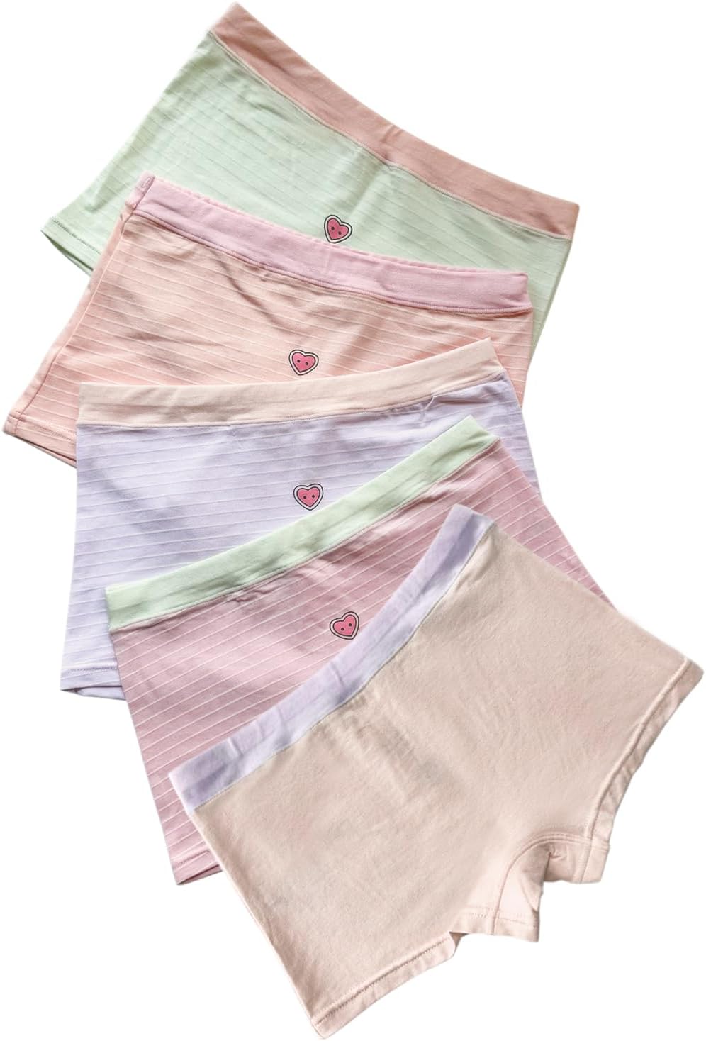 5 Pack Stripe Lovely Cat Little Girls Boyshorts Knicker Baby Girl Cotton Boxer Briefs Hipster Underwear 4-10 Years