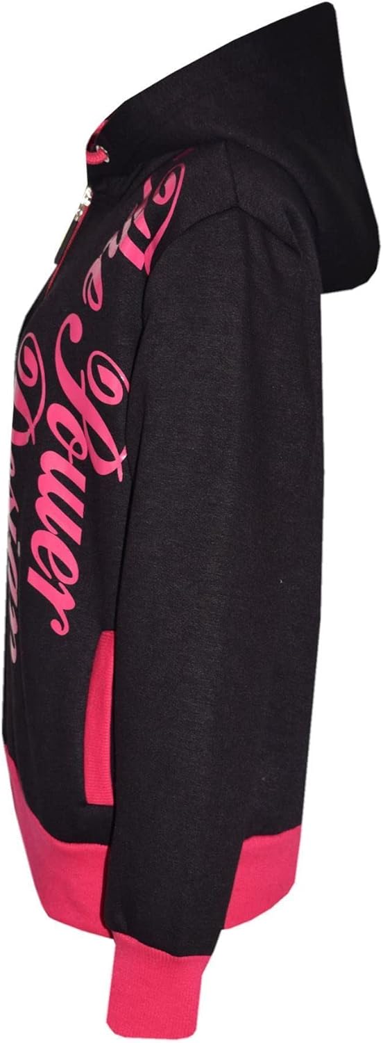 A2Z 4 Kids Tracksuit Girls The Power Design Print Zipped Top – T.S PD 301 Black & Pink._7-8