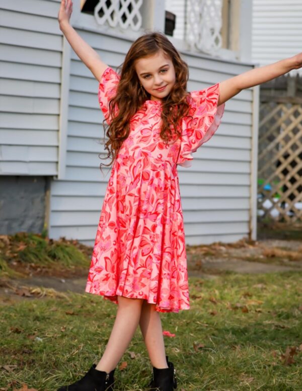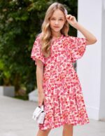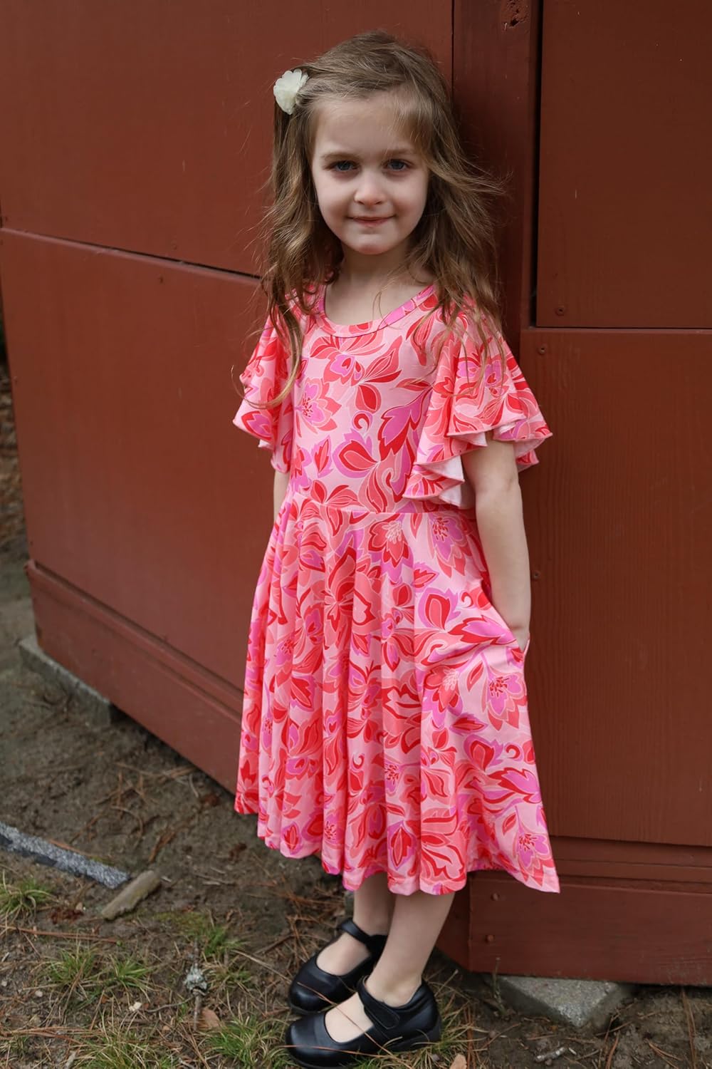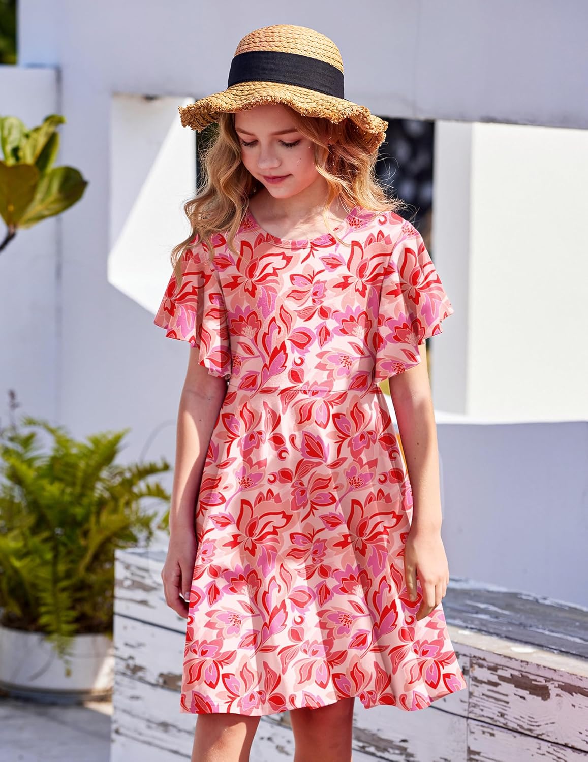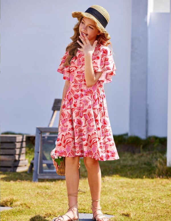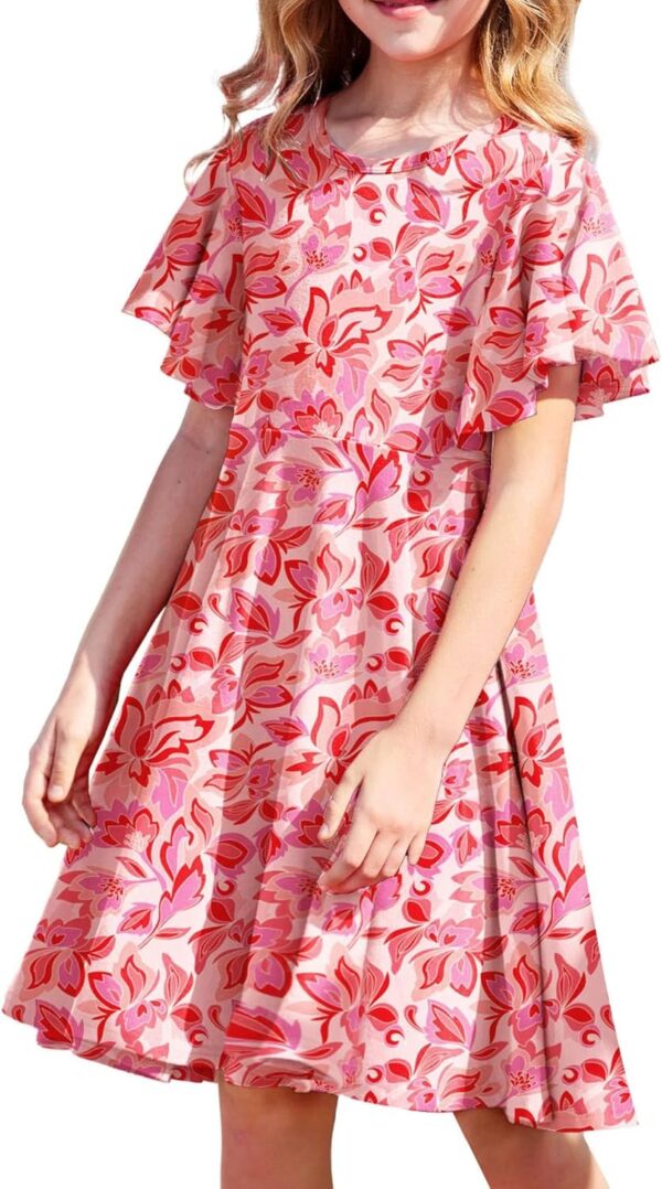 Arshiner Dresses for Girls Butterfly Sleeve Dress Children’s A-Line Swing Dress Round Neck Summer Dress Cotton Dress Festive Party Dress Wedding Casual Children’s Clothing with Pocket 5-13 Years