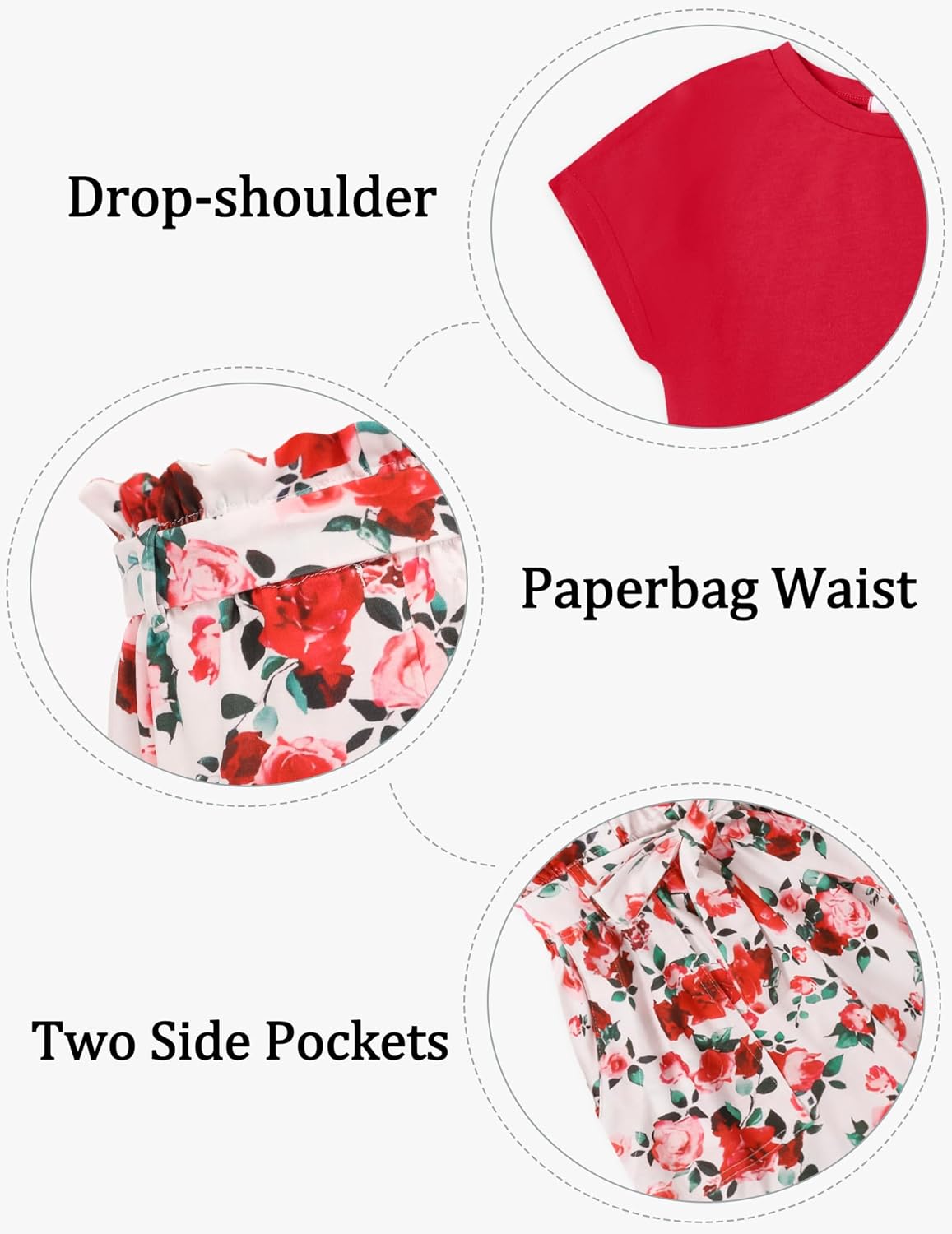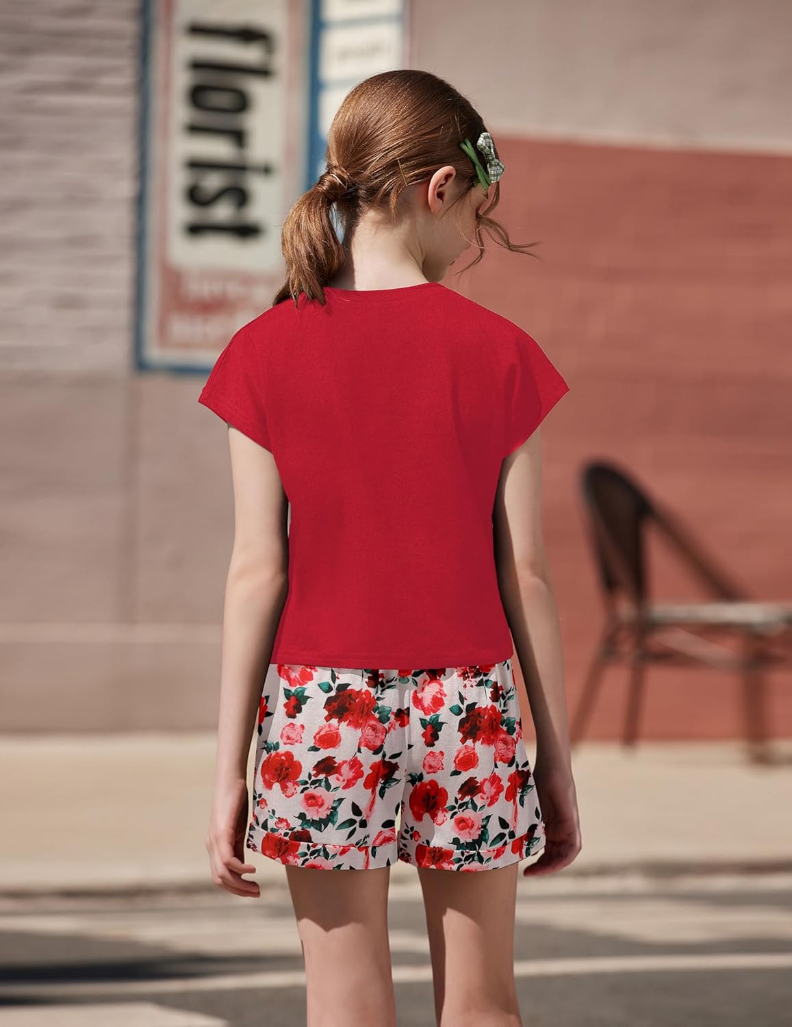 Arshiner Girl’s Clothing Set Kids Summer T-shirt with Shorts Set Casual Fashion Short Sleeve Top Outfits Set for Girls 6-14 Years