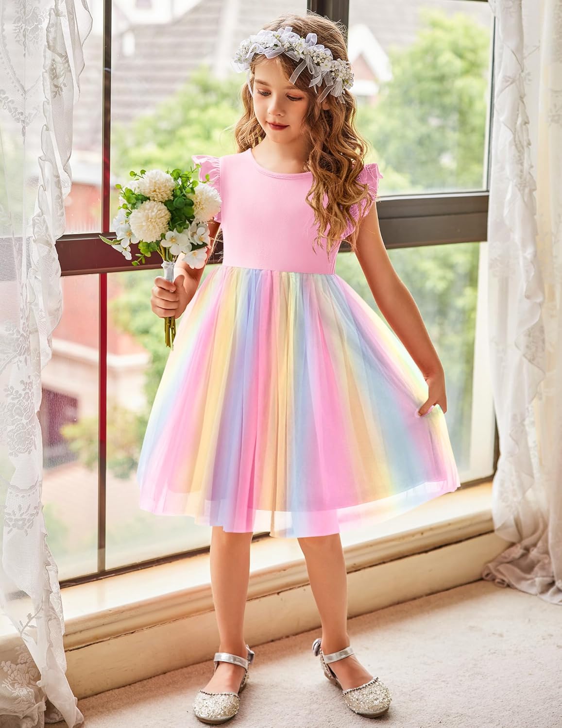 Arshiner Girls' Summer Tulle Dress Kids Cotton Strappy Dress Princess Dress RainbowArshiner Girls' Summer Tulle Dress Kids Cotton Strappy Dress Princess Dress Rainbow