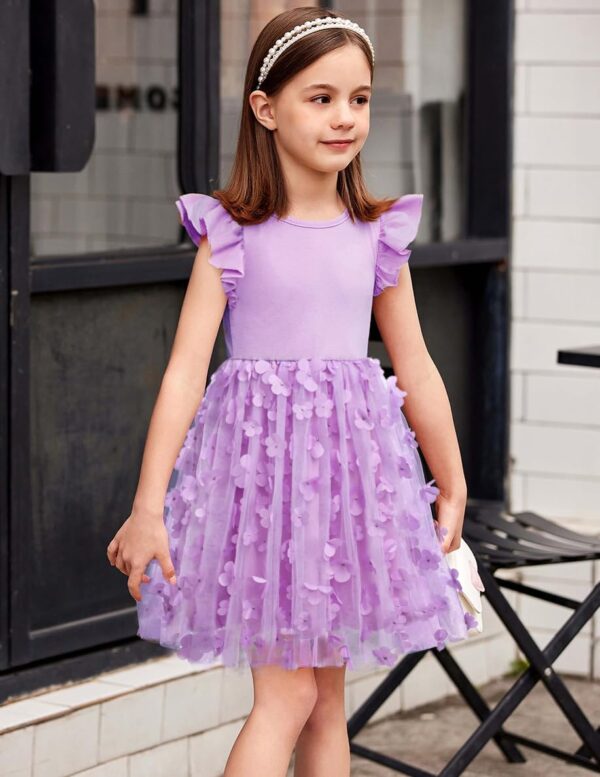 Arshiner Girls’ Dresses Toddler Tulle Dress Flying Sleeves Princess Dress Festive Dress Tutu Children’s Dress Cotton Party Dress Birthday Wedding Summer Dress 2-7 Year