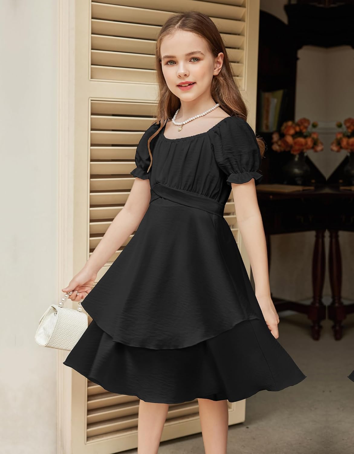 Arshiner Girls Summer Dress Puff Sleeves Chiffon Dress A-Line Tiered DressArshiner Girls Summer Dress Puff Sleeves Chiffon Dress A-Line Tiered Dress