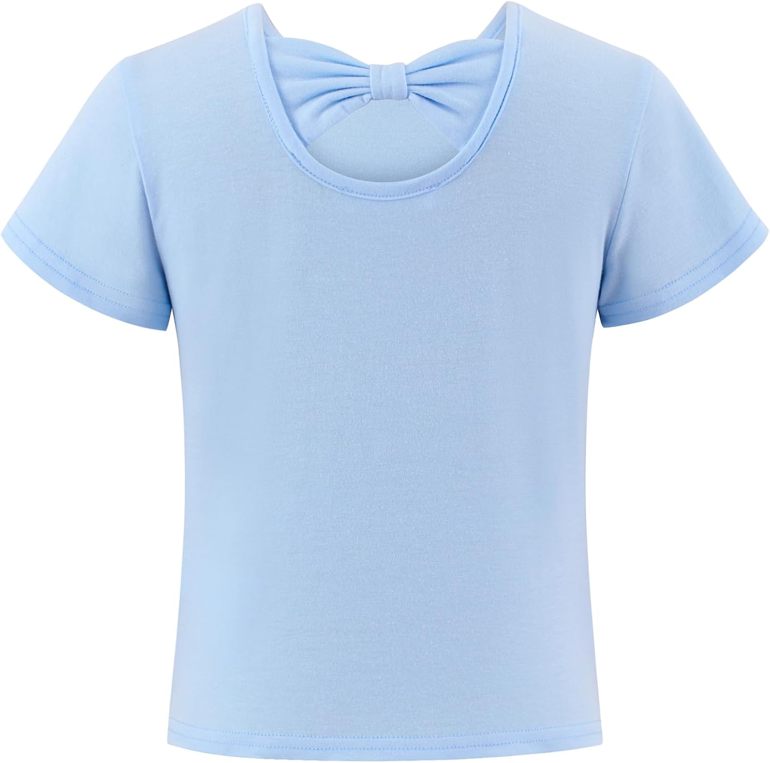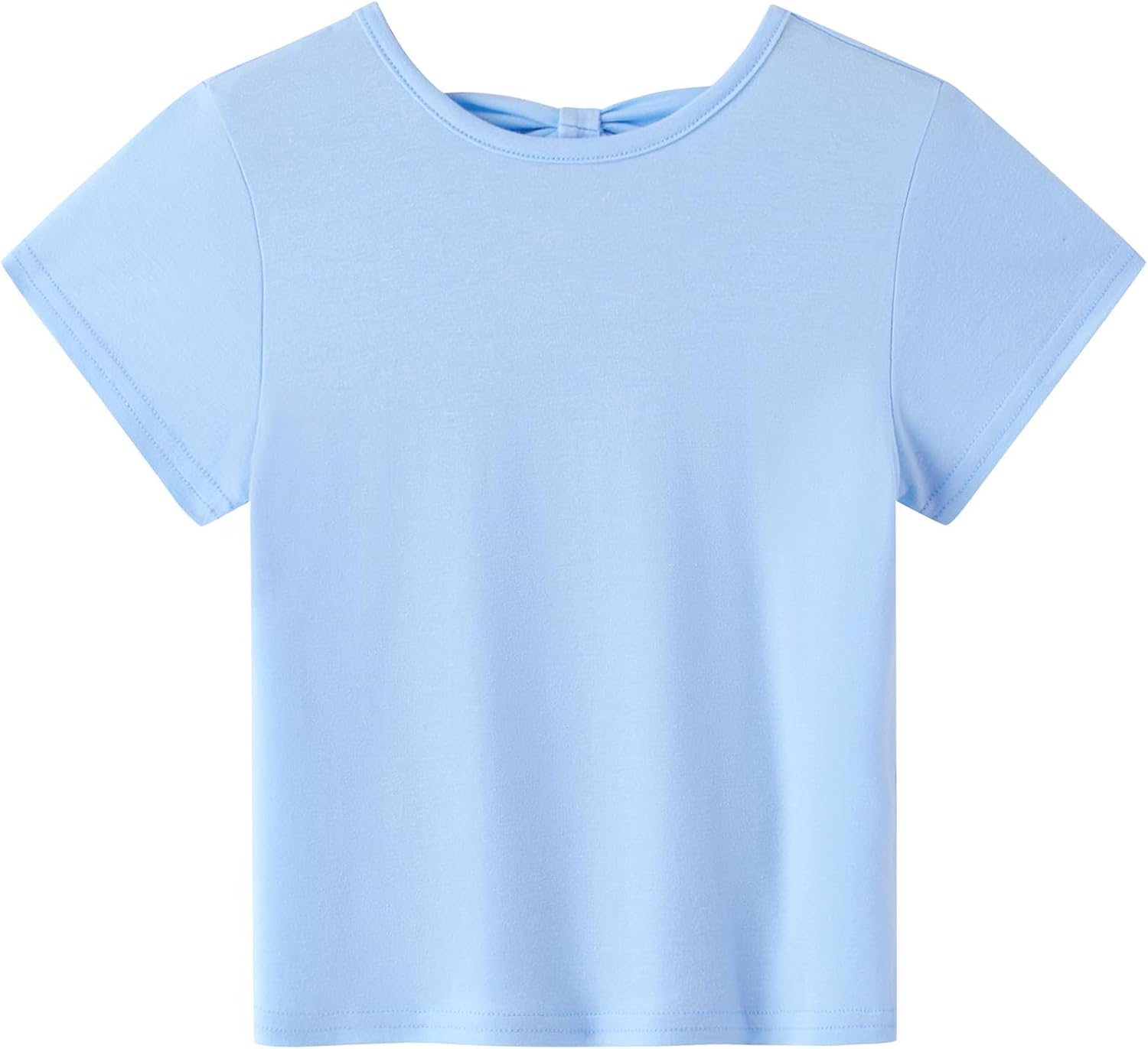 Arshiner Girls T-Shirts Back Hollow Bow Tie Kids Cotton Summer Short Sleeve Tops Cute Leisure Fashion Shirt Round Neck Tee Shirt for Girls 3-14 Years