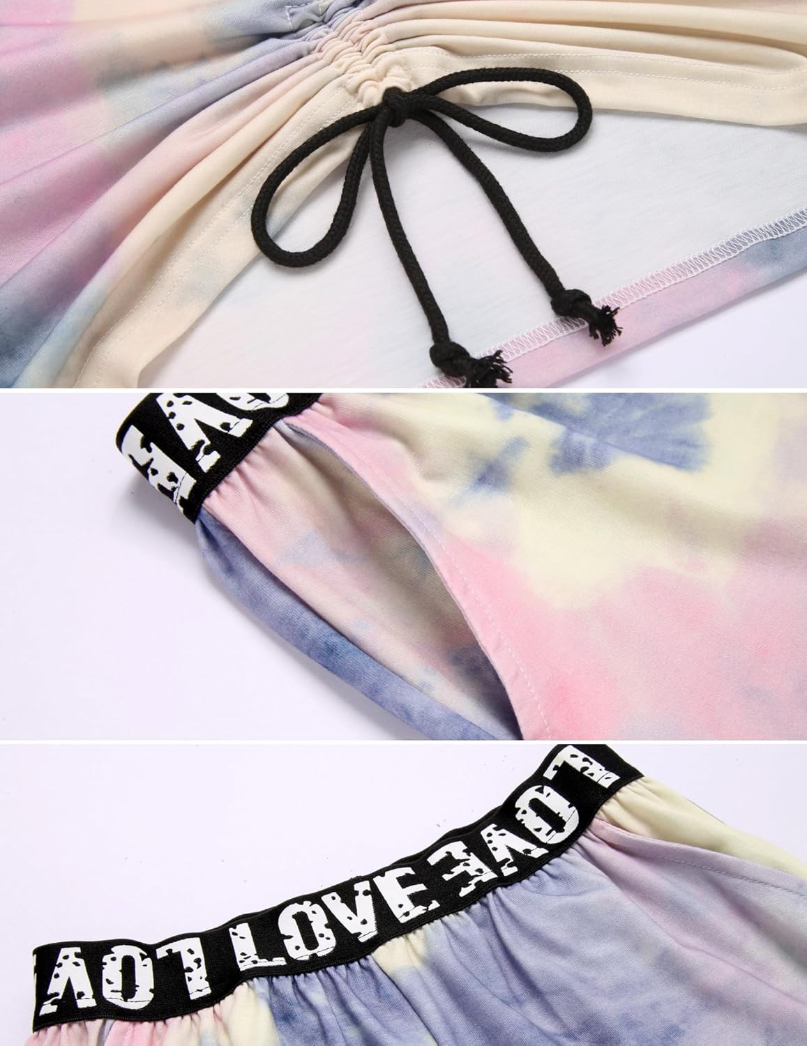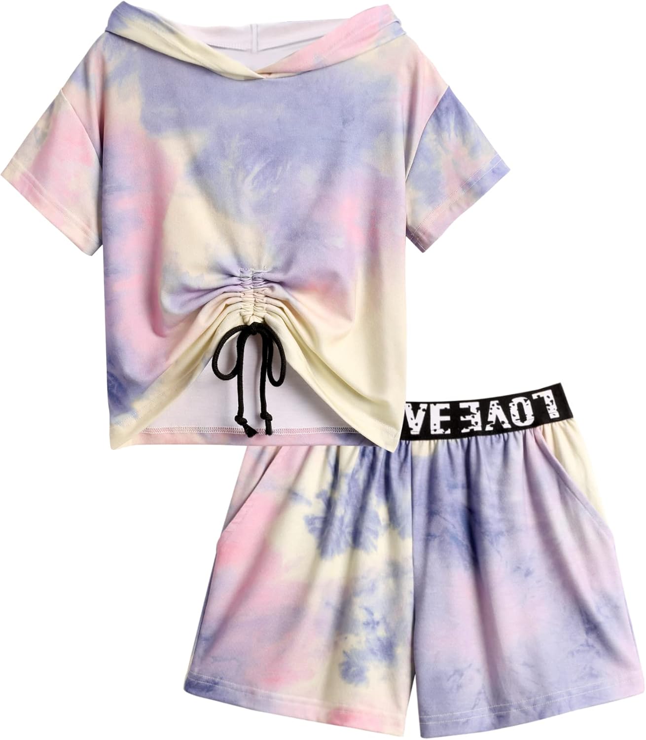 Arshiner Girls Tie-dye Clothing Sets Kids Short Sleeve Hoodie Tops with Shorts Sets Sport Casual Fashion Street Summer Outfits for Girls