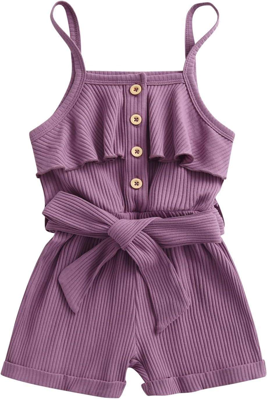 Awxoder Toddler Baby Girl Clothes Ruffle Suspender Solid Color Bow Shorts Outfit Sets