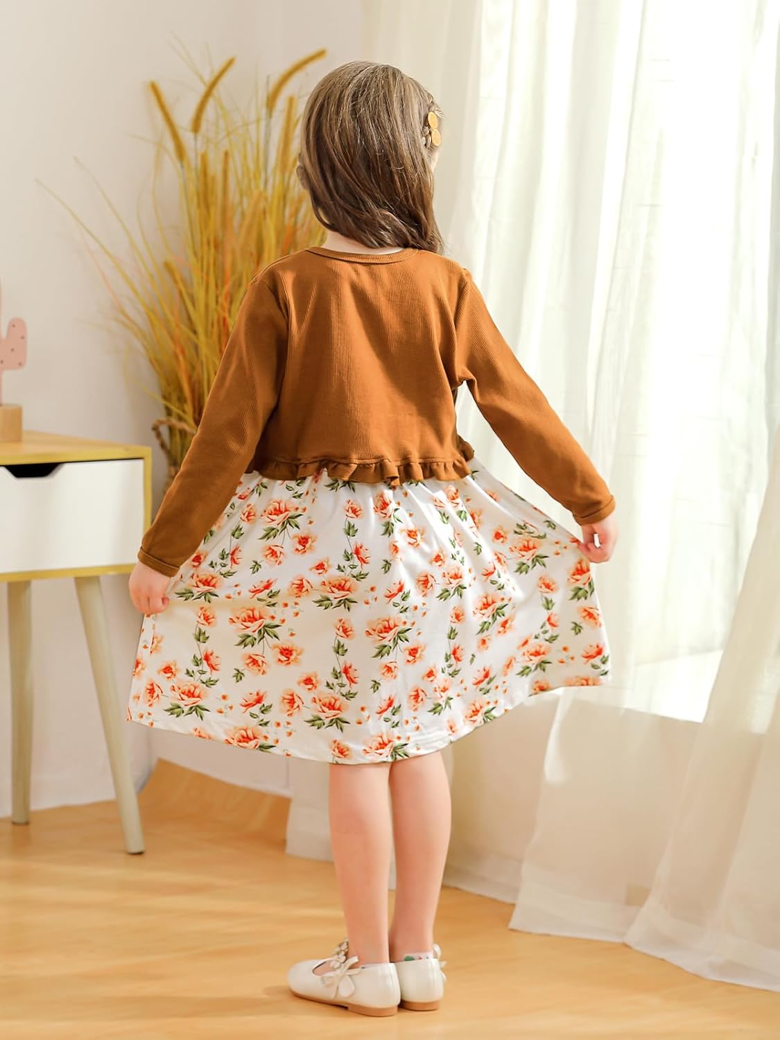 Baby Kids Girls Dress and Cardigan Sets 2 Piece Outfit Suit Toddler Girl Sleeveless Dress and Long Sleeve Cardigan Set