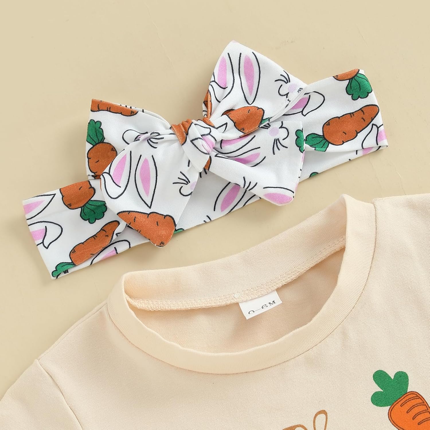 Baby Girls Shorts Set, Flower Print Short Sleeve Romper with Shorts and Hairband Summer Outfit