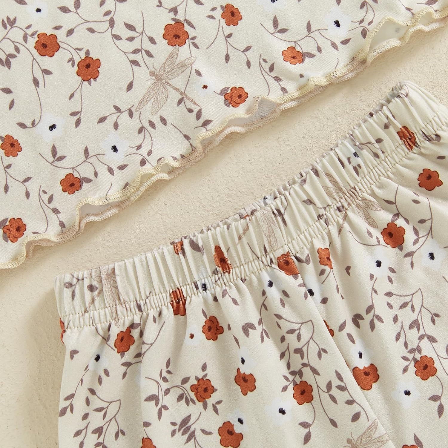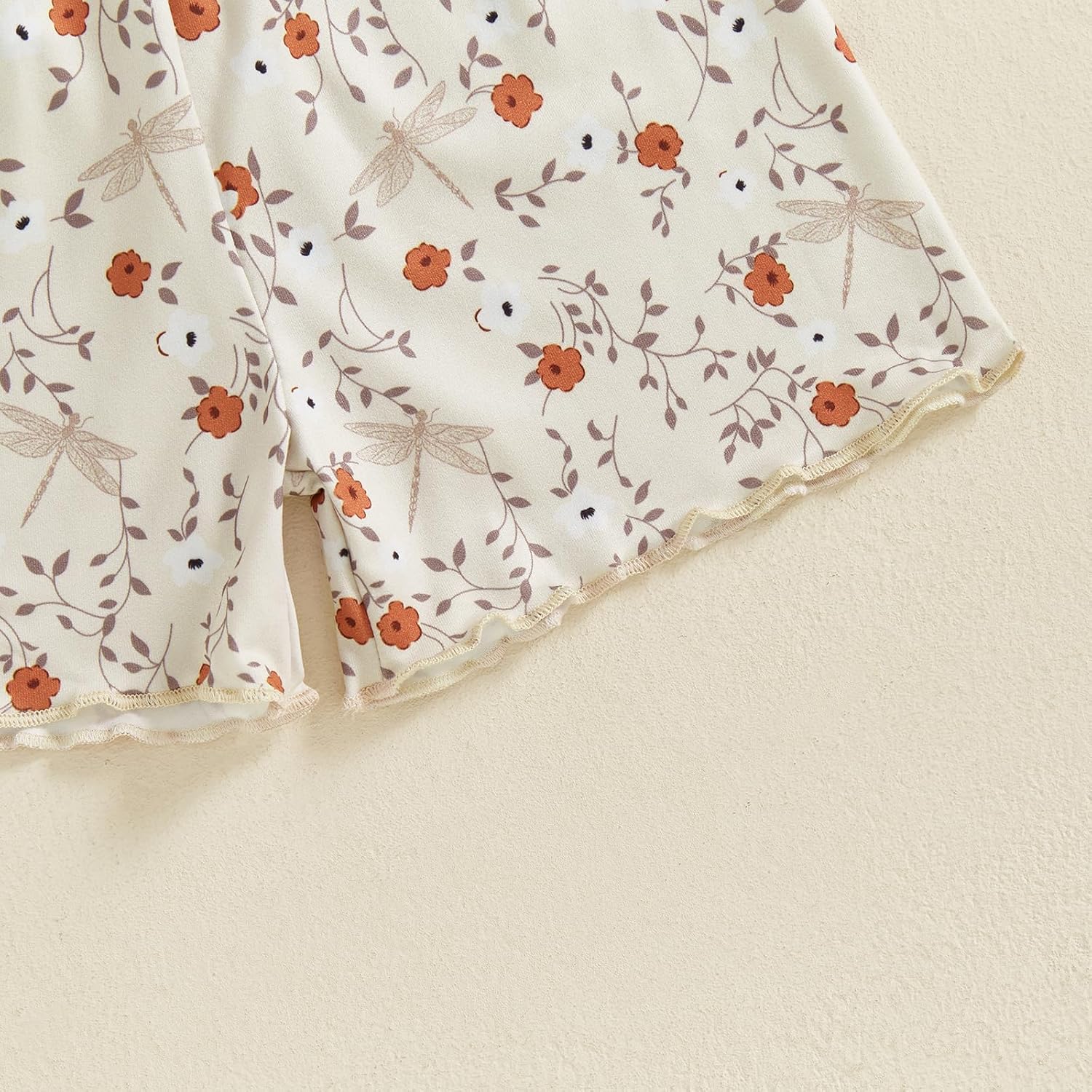 Baby Girls Summer Two Piece Outfits Floral Print Crew Neck Short Sleeve Top Rippled Edge Elastic Shorts Set Toddler Girl Sets Kids Clothes