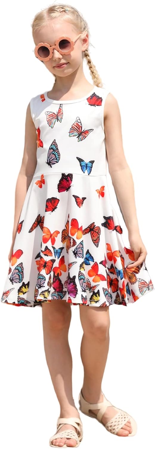 Belovecol Girls Dress Sleeveless 3D Pattern Swing Sundress A-line Round Neck Dresses Casual Party Mermaid Galaxy Dress 4-15 Years
