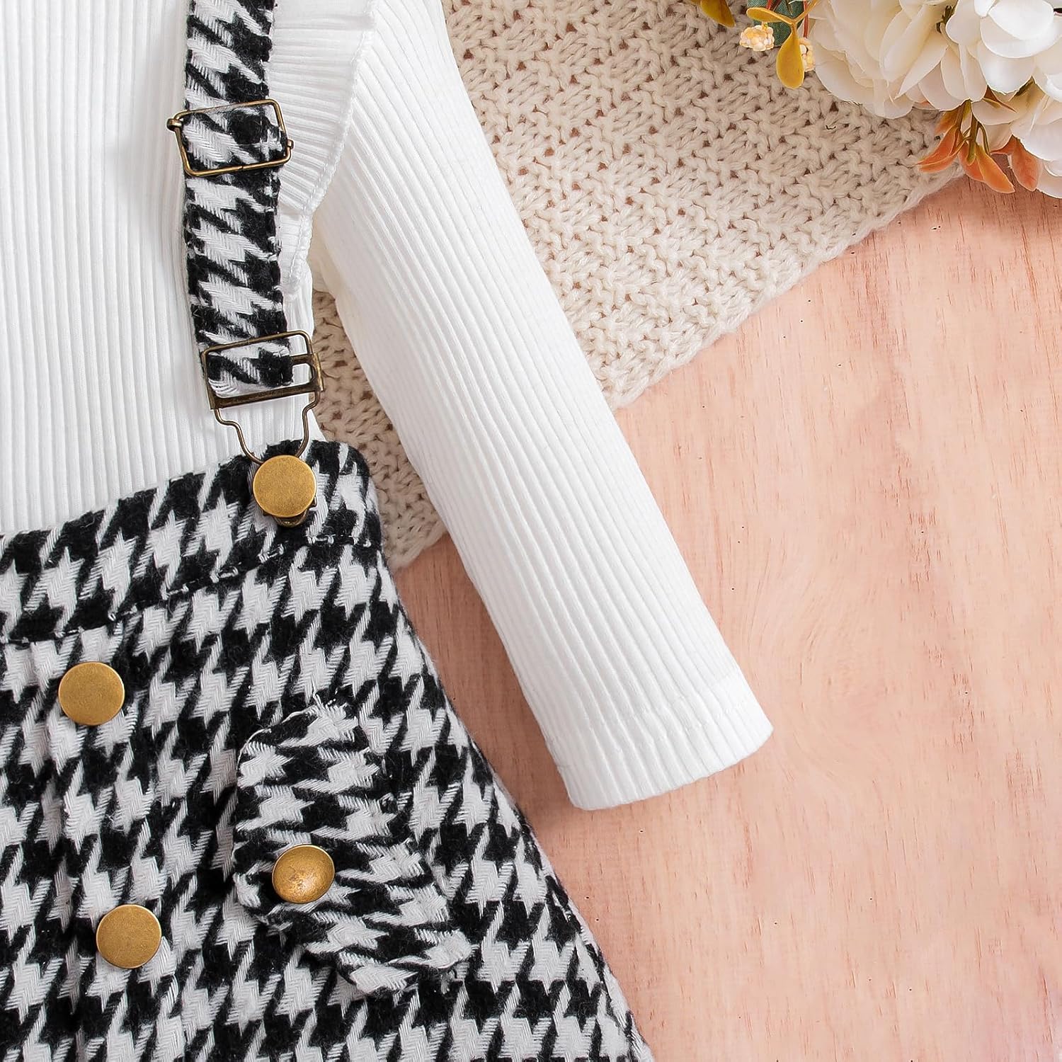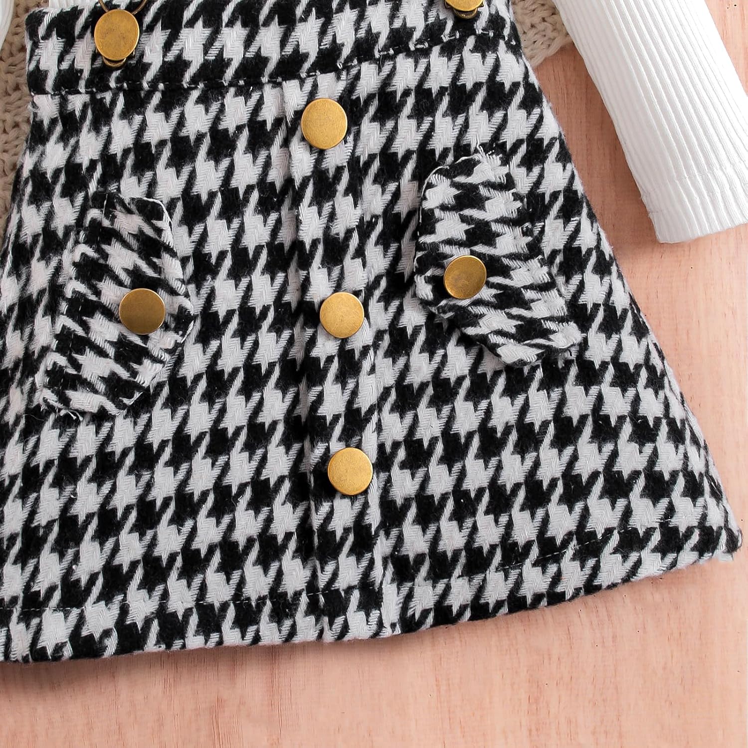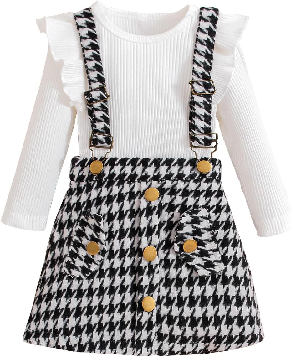 Toddler baby girls 2 pcs suspender skirt set is made of cotton blend and polyester material, soft, skin-friendly and comfy enough for all day wearChic baby girl clothes, good as little girl fall winter clothes outfit, toddler girl fall winter skirt set.