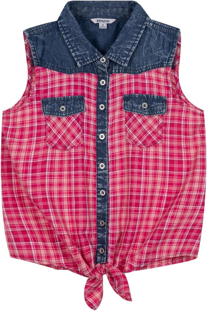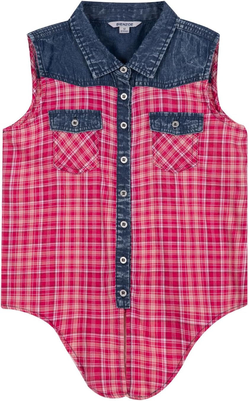 Bienzoe Girls Crop Tank Tops: Cowgirl Plaid Sleeveless Button Down Western Casual Blouse