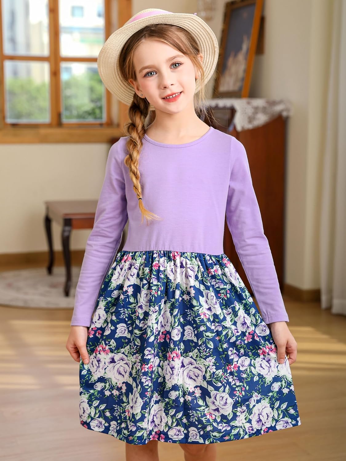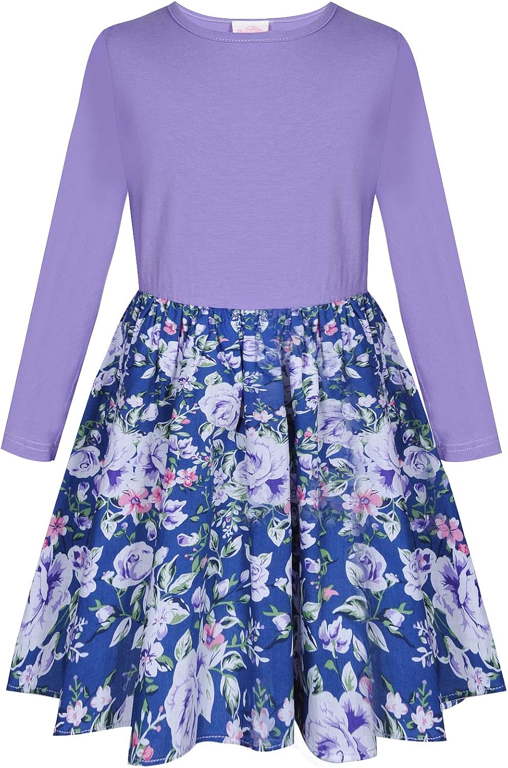 BONNY BILLY Girls Kids Long Sleeve Autumn Winter Casual Floral Jersey Dress