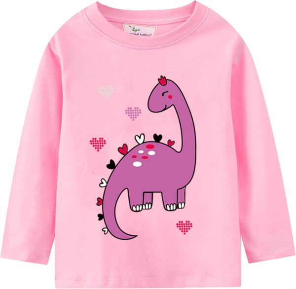 Girls Long Sleeve T-Shirt Tops Toddler Kids 100% Cotton Pink Dinosaur Cat Unicorn Flamingo Butterfly Crewneck Tee Shirts Clothes Age 1-7 Years
