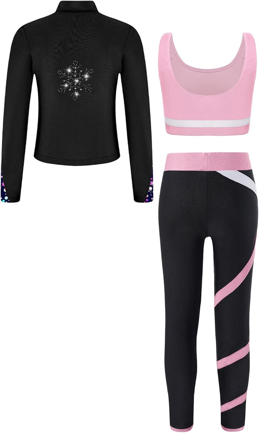 Freebily Kids Girls 3 Piece Yoga Workout Outfits Sleeveless Crop Tank Tops and Leggings Long Sleeve Zipper Sweatshirt