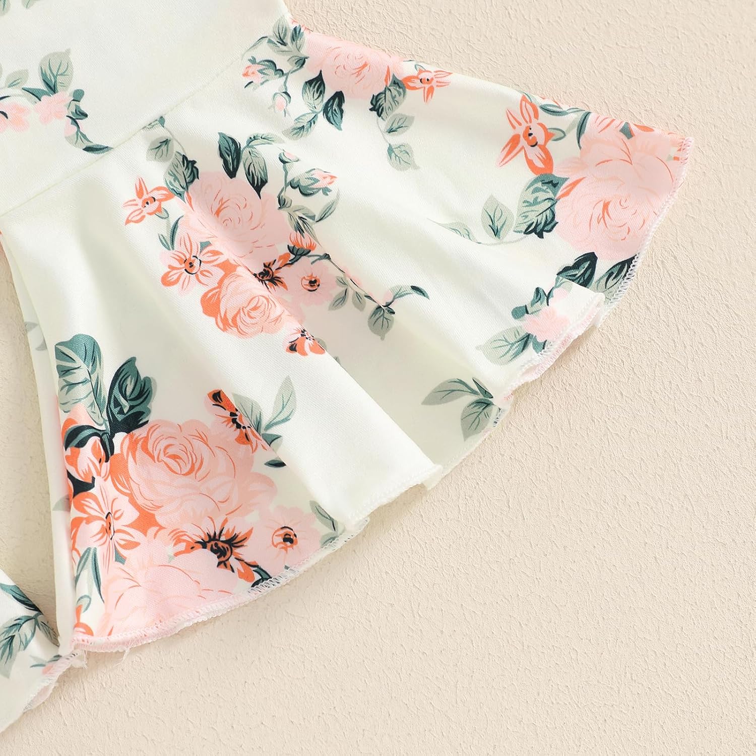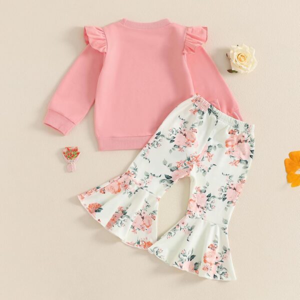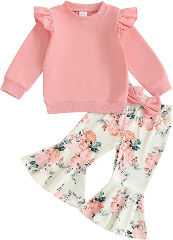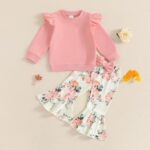 Geagodelia Toddler Baby Girl Fall Winter Outfits Long Sleeve Floral/Butterfly/Strawberry Print Sweatshirt Pullover with Elastic Waist Flared Pants Sets 2Pcs Clothes for Little Girls