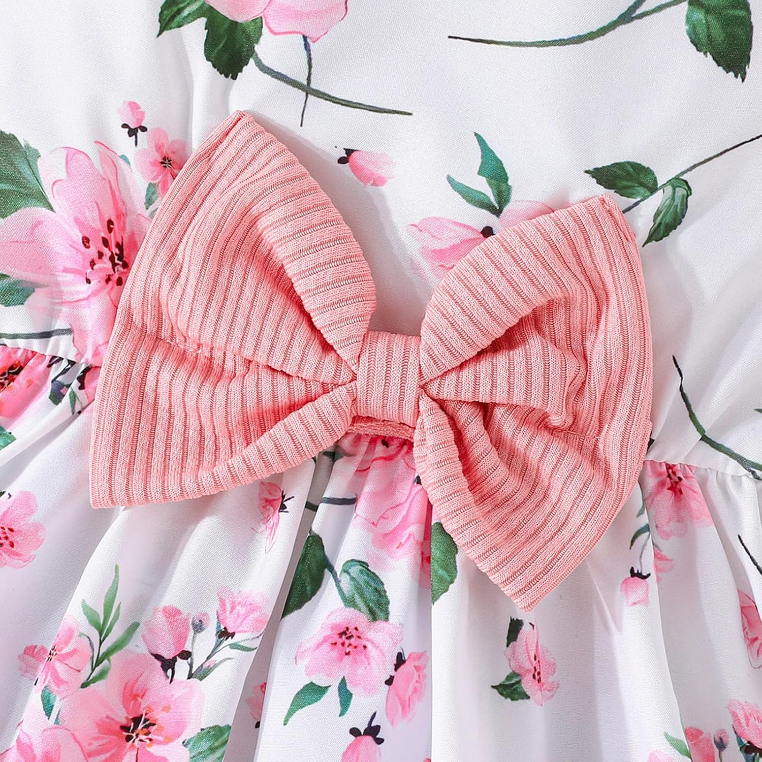 Girl Dress Toddler Long Sleeve Dresses A-line Floral Casual Party Dress with Cardigan Sets for Little Big Kids 4-13 Years