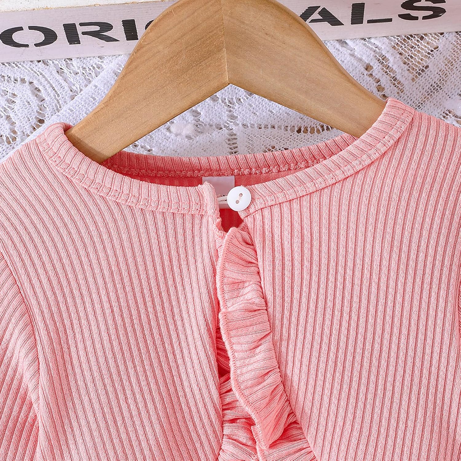 Qiraoxy Baby Girl Clothes Ruffle Ribbed Long Sleeve T-Shirt Top Plaid Skirt Fashion Set 2Pcs Toddler Kids Girl Fall Winter Outfits 1-6 Years
