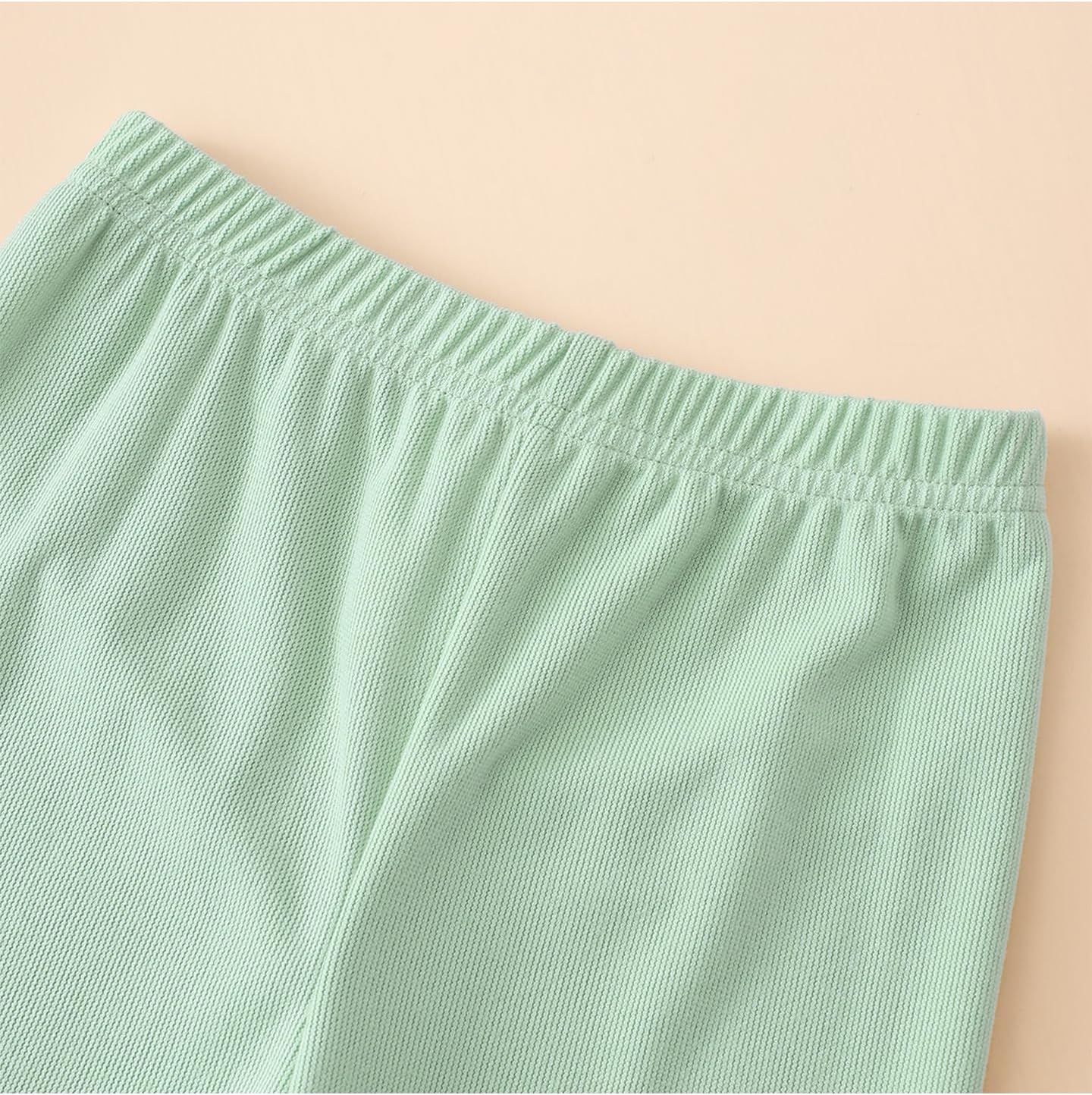 Adorable toddler girls pant set has simple colors and patterns on it.Pattern:FlowerLadybirdHeart LeopardDinosaur