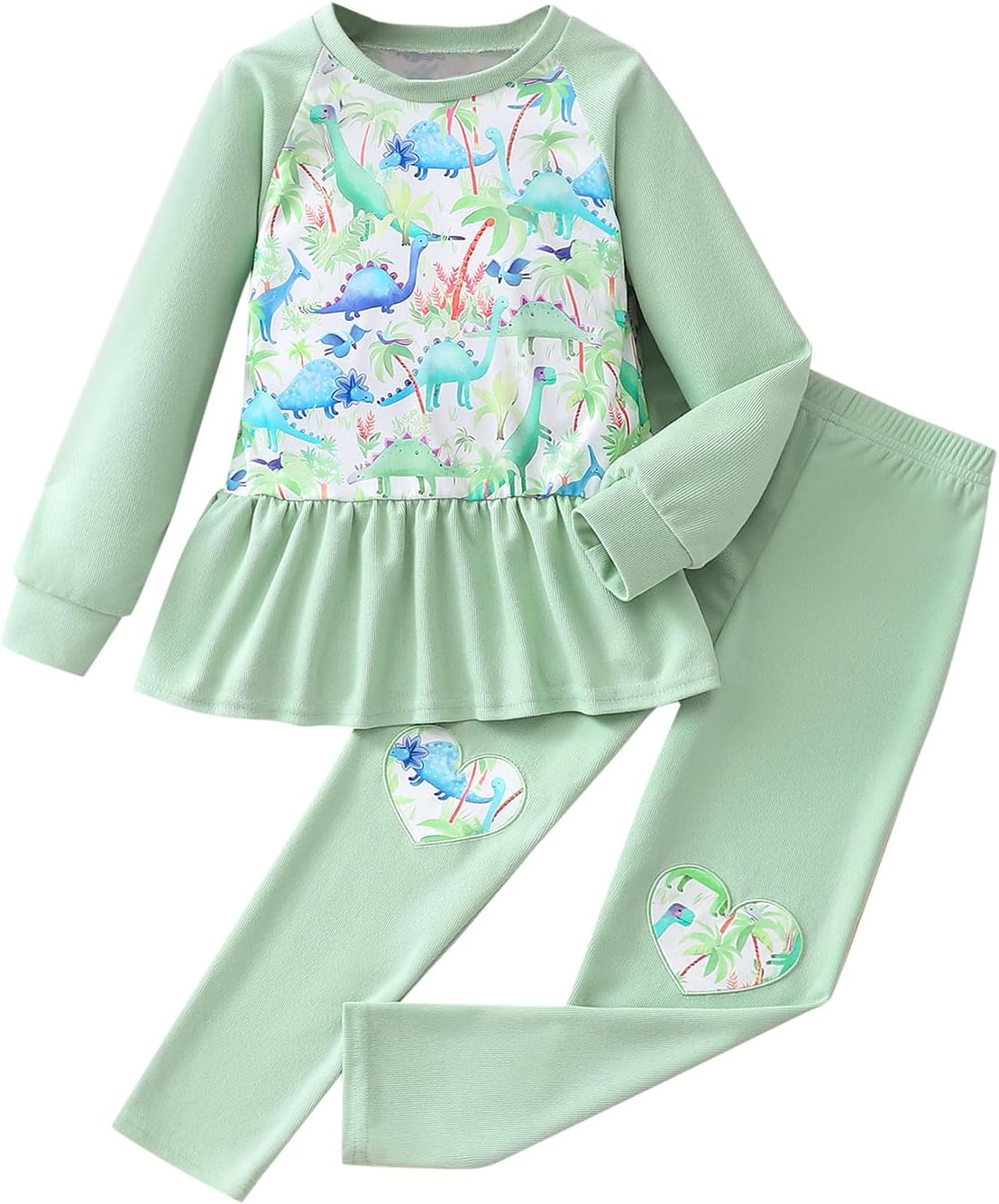 Girl Trousers Set Raglan Long Sleeve Ruffle Top Shirt Print Pants Kid 2 Pcs Outfits Clothes 3-7 Years