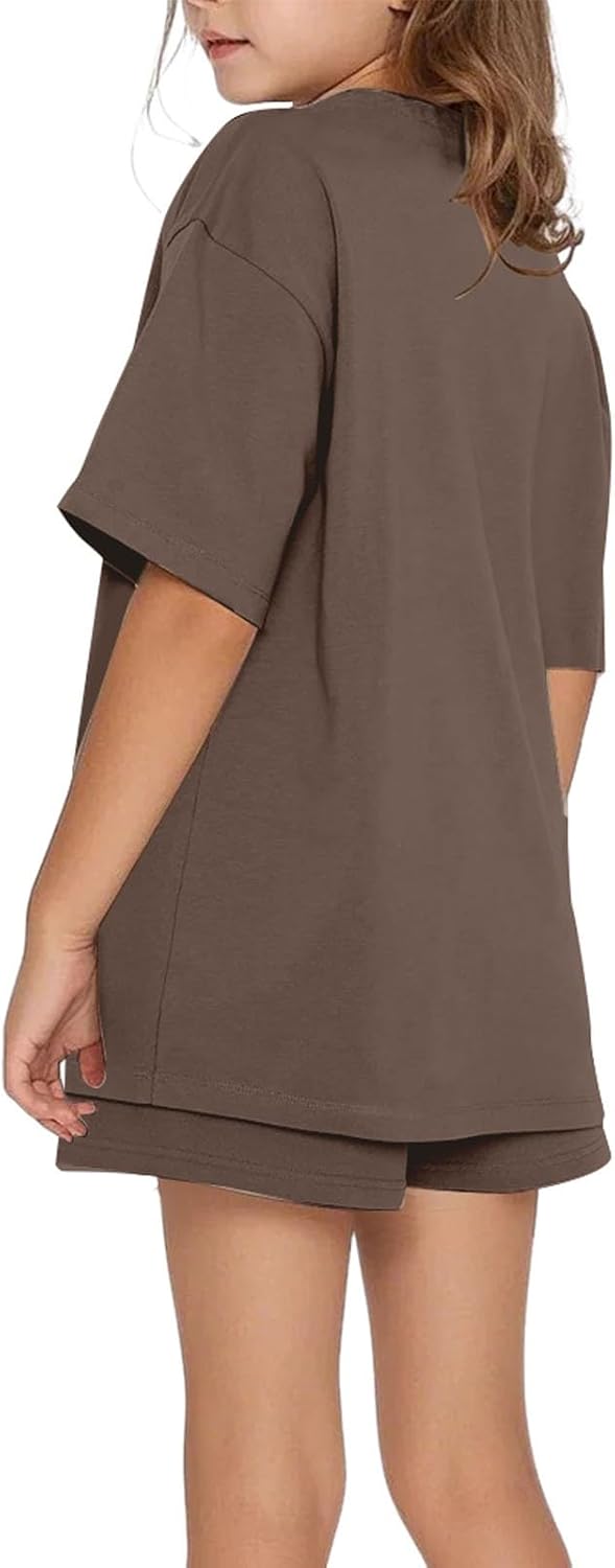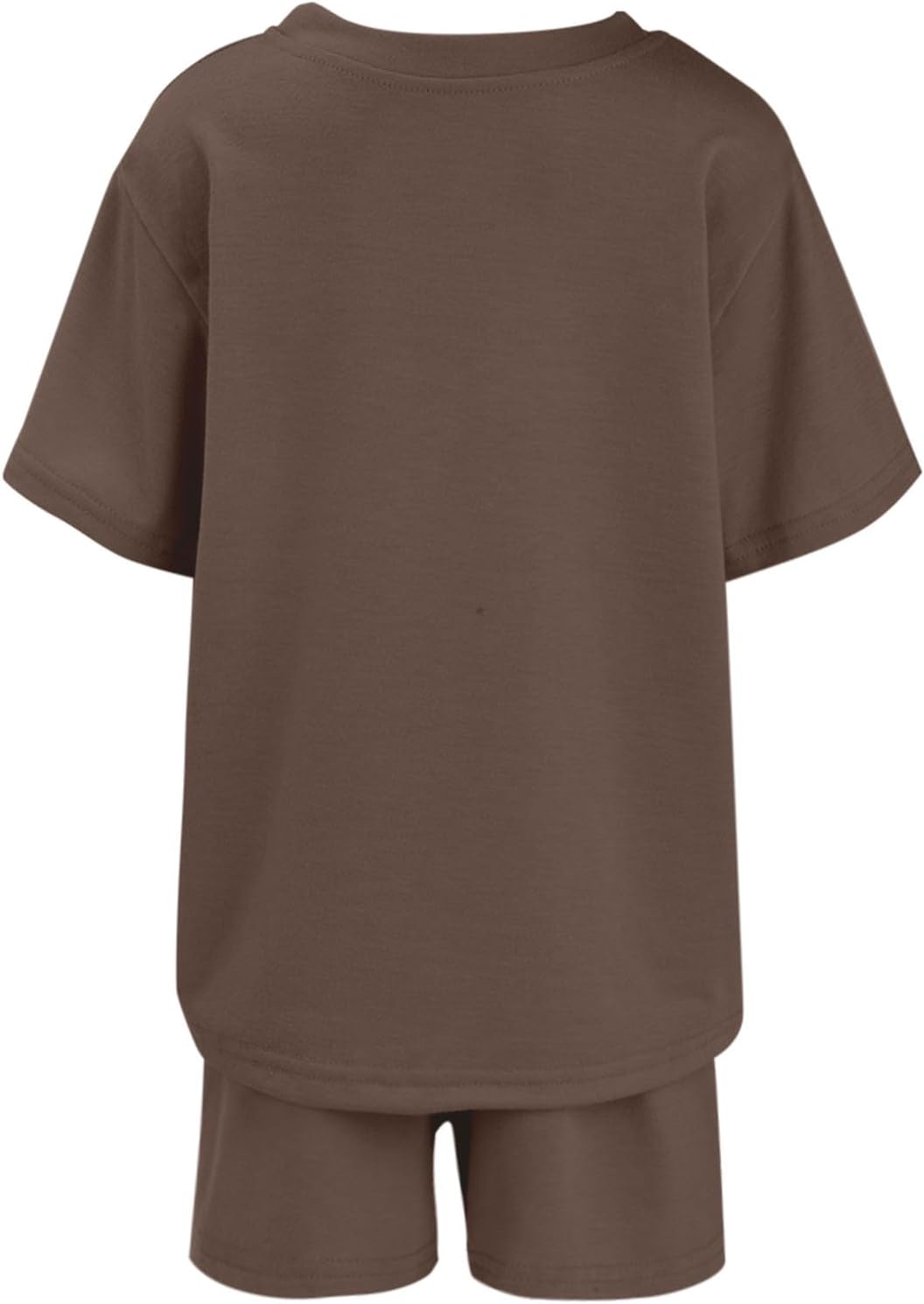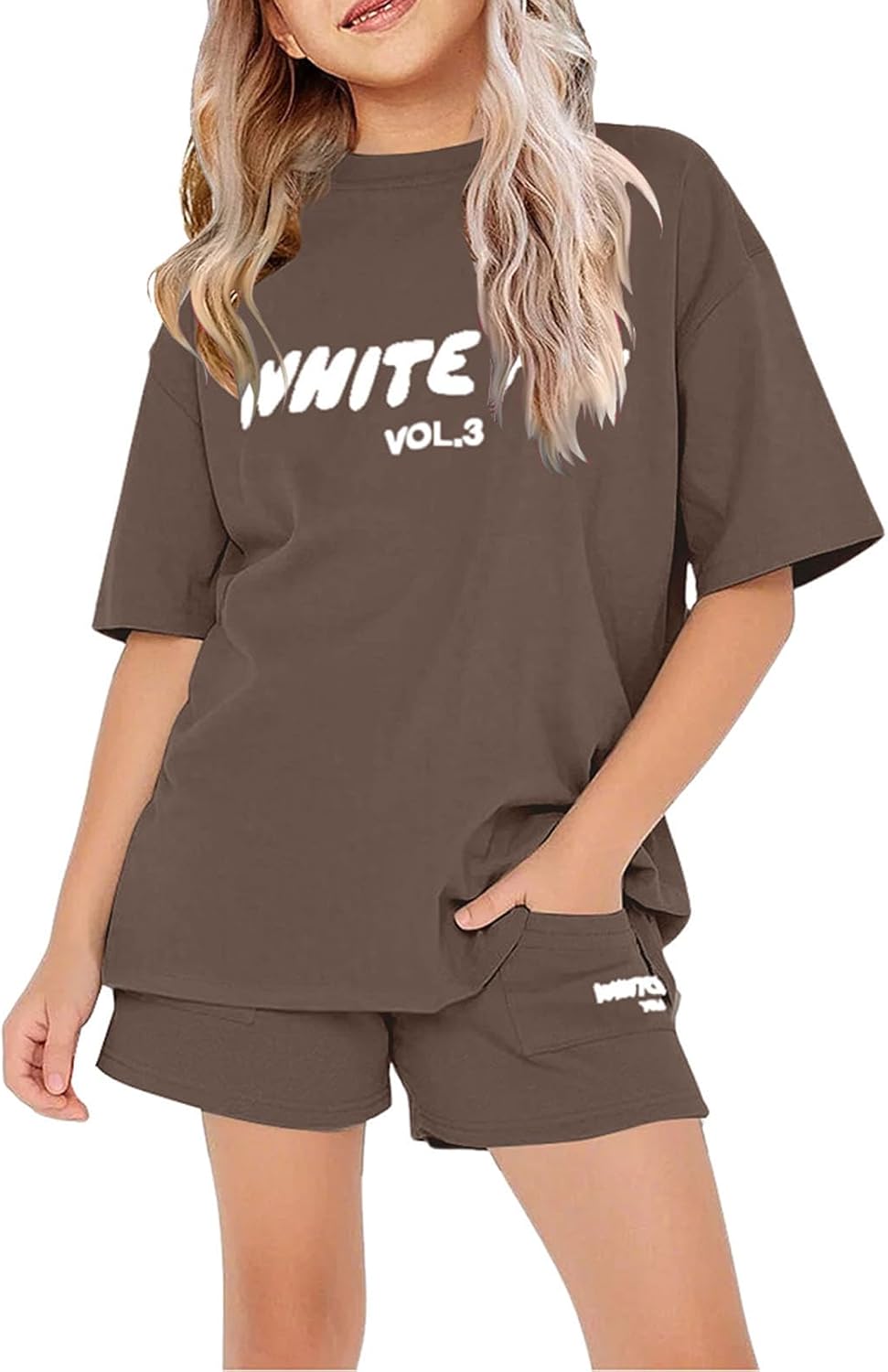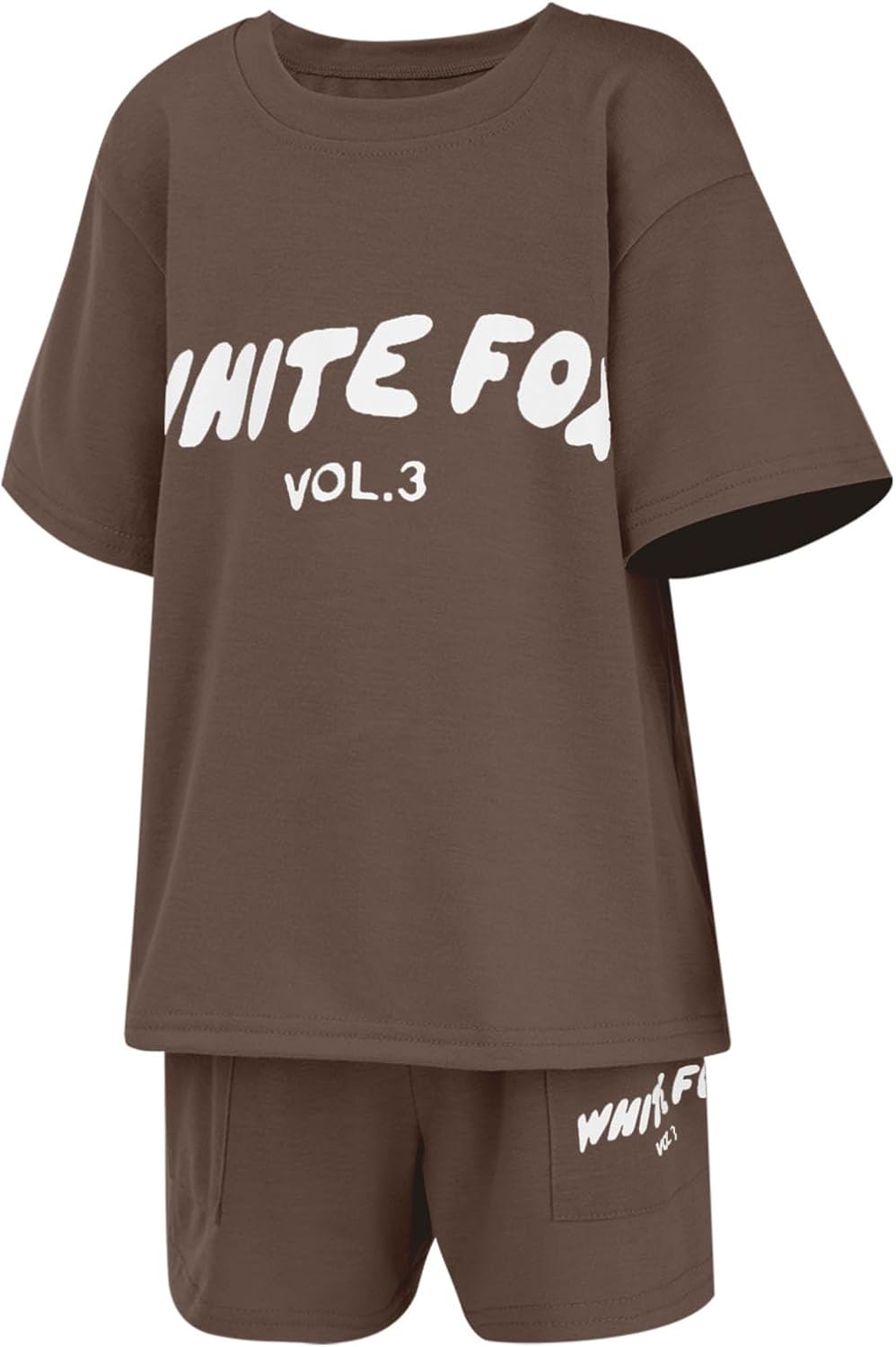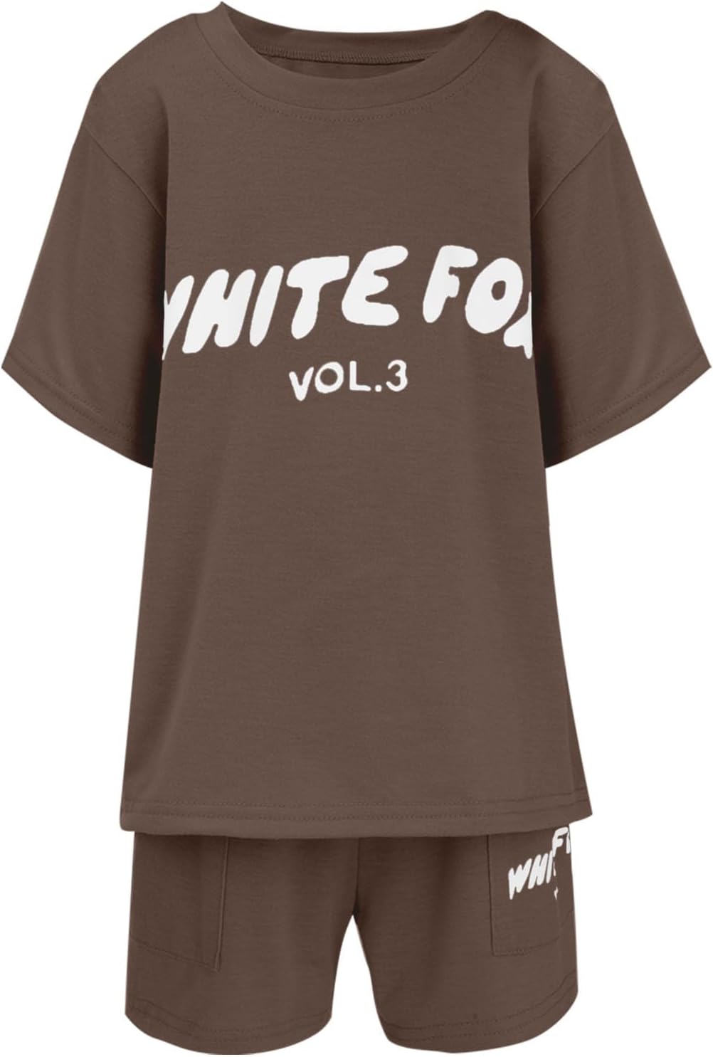 Girls Tracksuit Set Kids Trendy T-shirt + Shorts 2 Piece Outfit Summer Fashion Short Sleeve Fox Letter Print Tops with Loose Jogger Shorts Y2k Activewear Casual Sweatshirt Gym Set UK