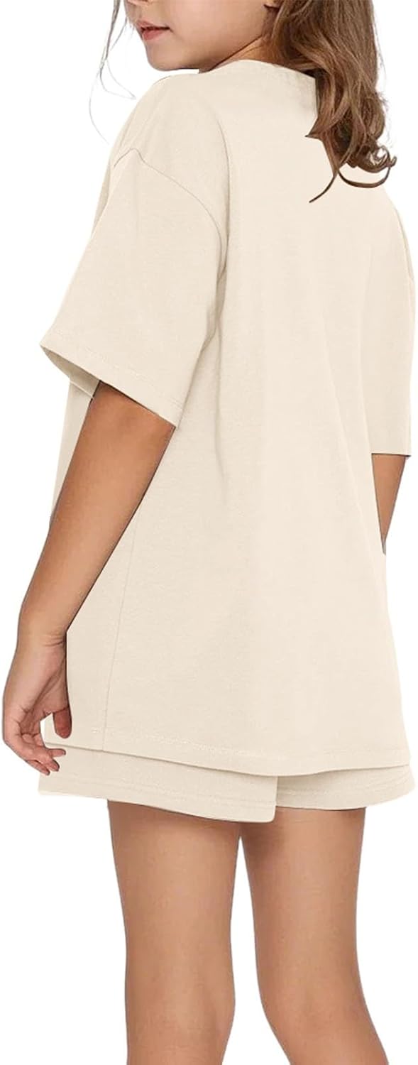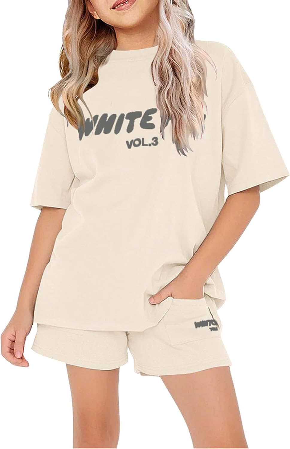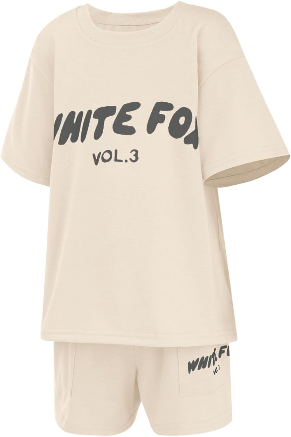 Girls Tracksuit Set Kids Trendy T-shirt + Shorts 2 Piece Outfit Summer Fashion Short Sleeve Fox Letter Print Tops with Loose Jogger Shorts Y2k Activewear Casual Sweatshirt Gym Set UK