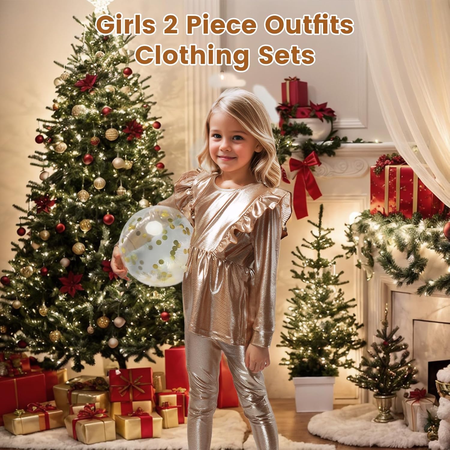 Gogokids Girl 2 Piece Outfits Children Long Sleeve Tops + Pants Set Clothes