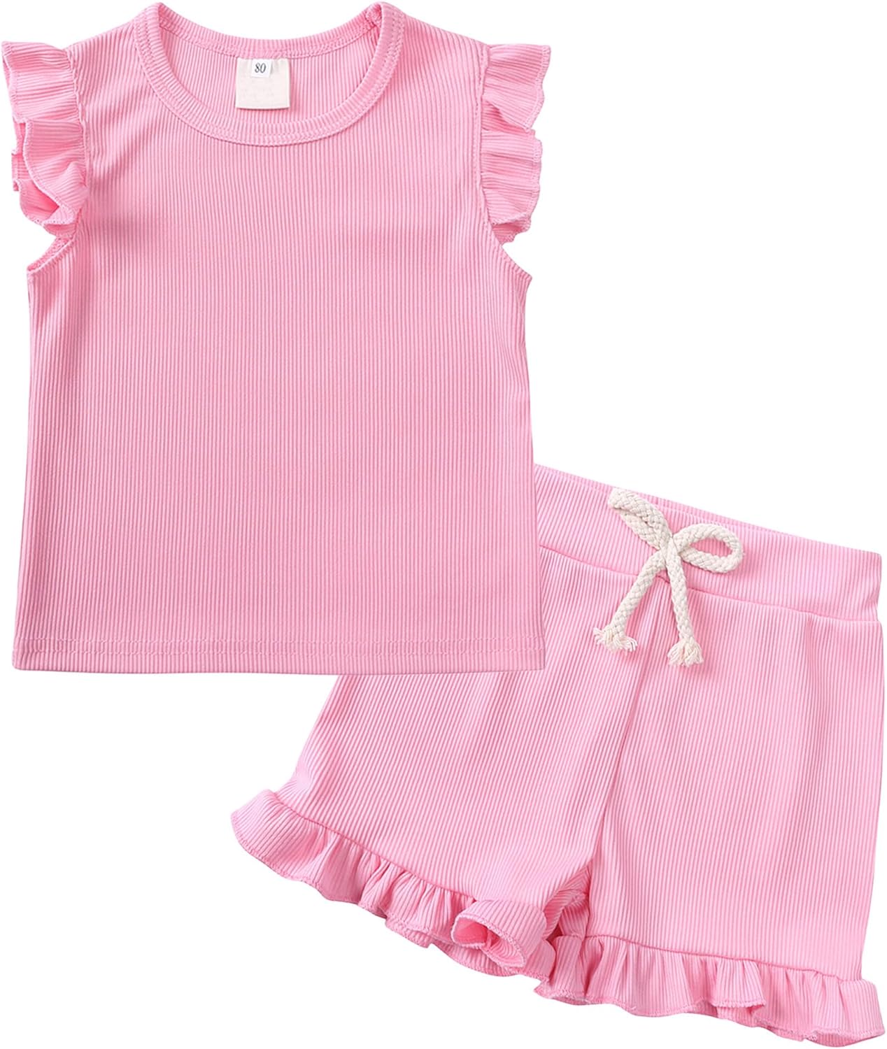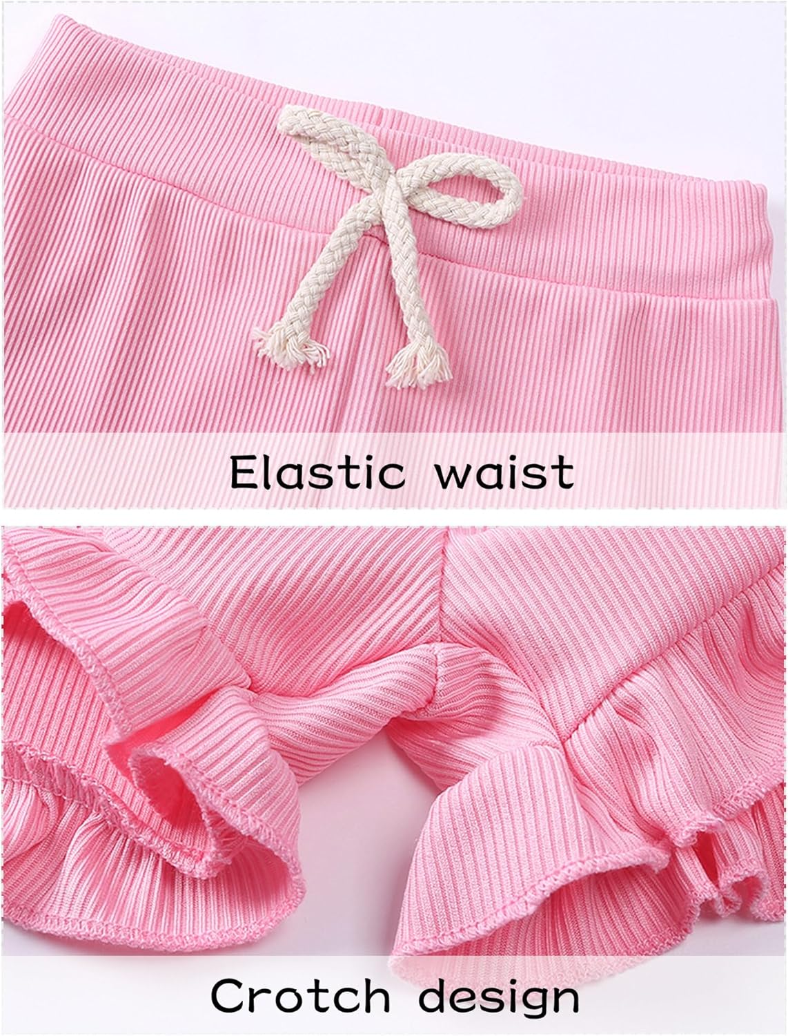 Happy Cherry 2 Piece Girls Summer Outfits Short Sleeve Tee and Flare Leg Pants Set Kids Solid Color Clothes Set Elastic Waist Bell Bottom Trousers Suit 9 Months – 10 Years
