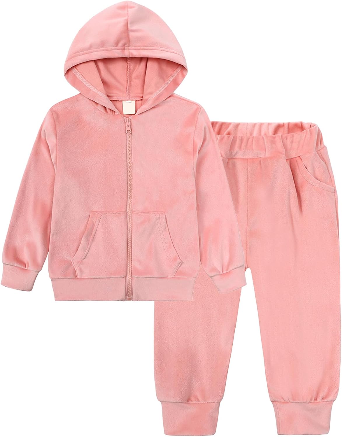 Girls Hoodie Tracksuit Set Velour Zip Up Jackets and Joggers Bottom Outfits