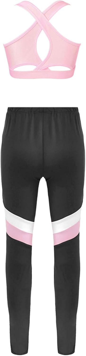 iEFiEL Kids Girls 2 Piece Outfits Crop Top Sports Bras and Athletic Leggings Set Yoga Pants Tracksuit Activewear Set