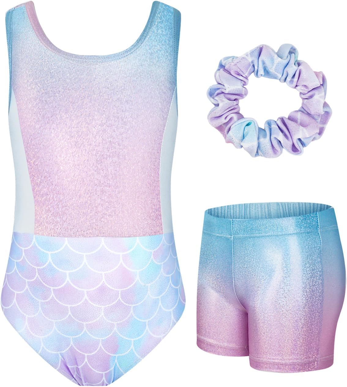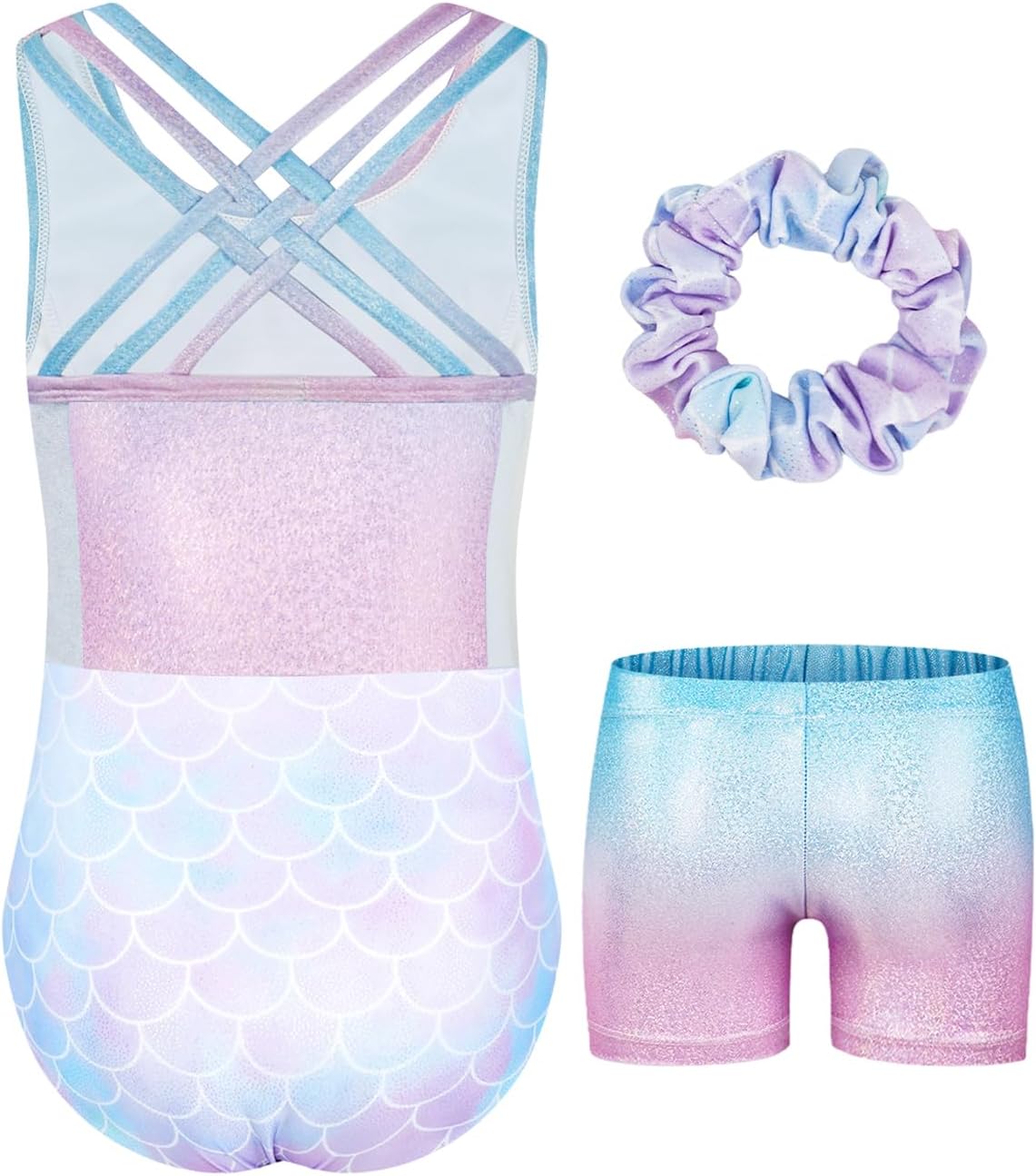 JiAmy Gymnastics Leotards for Girls with Short, Kids Athletic Crisscross Back Dancewear Gymnastics Athletic Outfit 3Pcs for Kids 3-12 Years