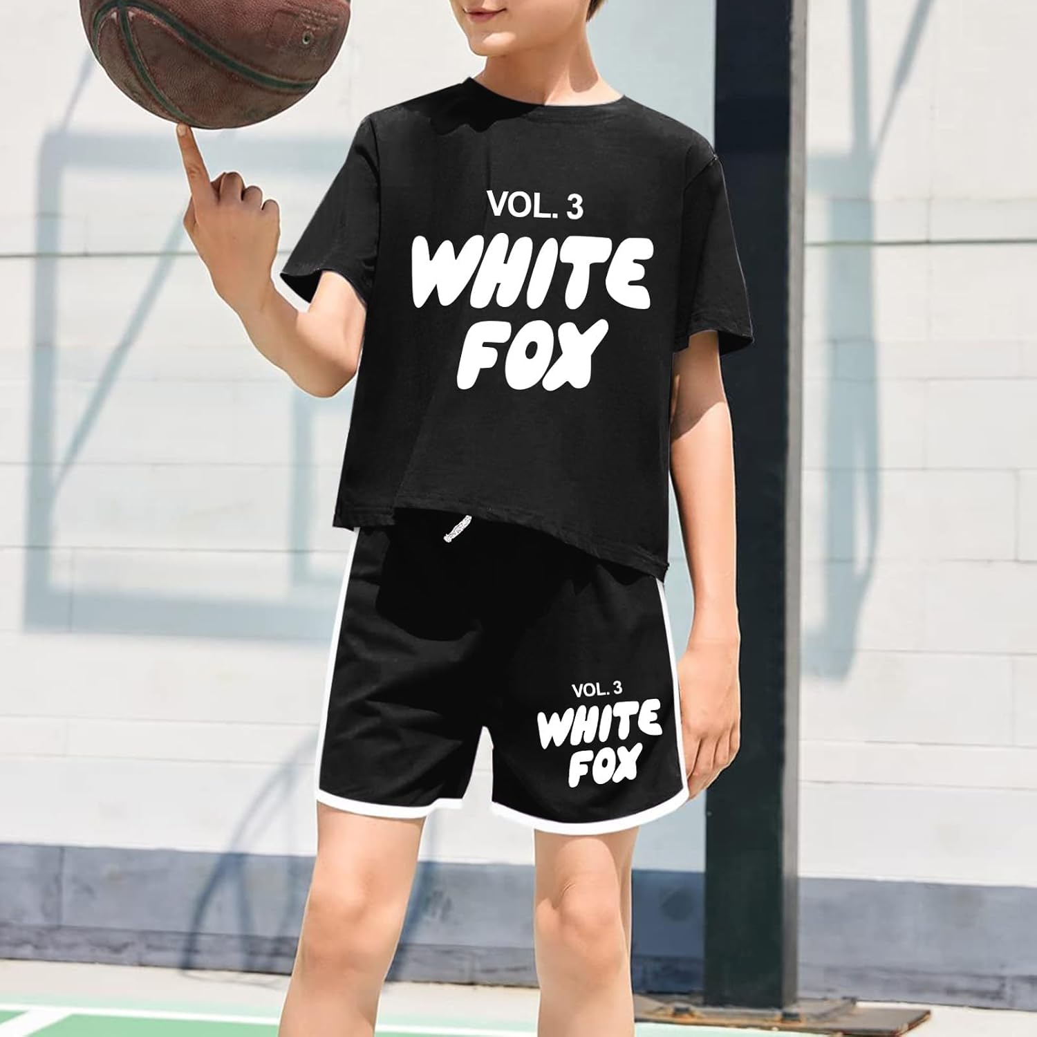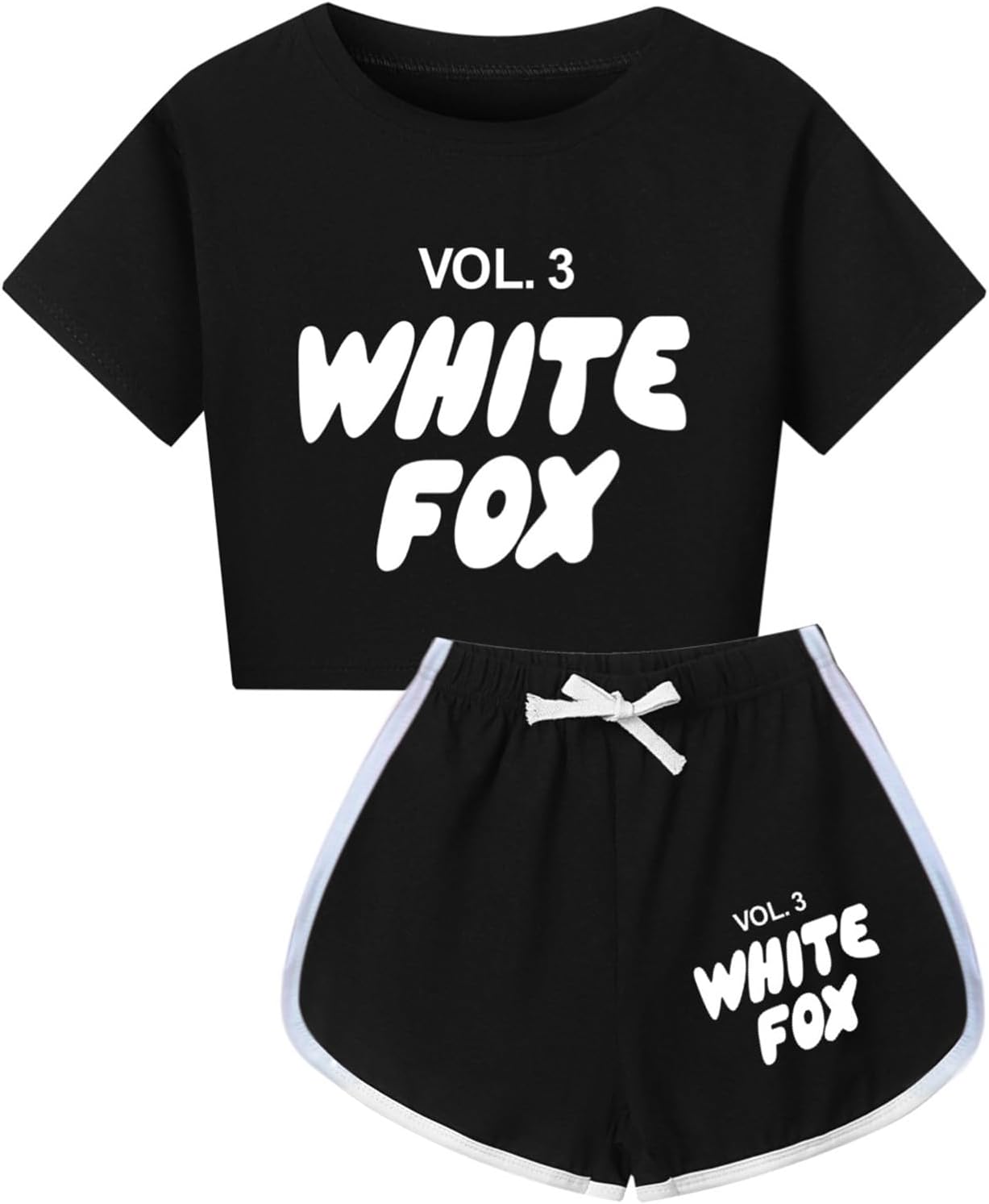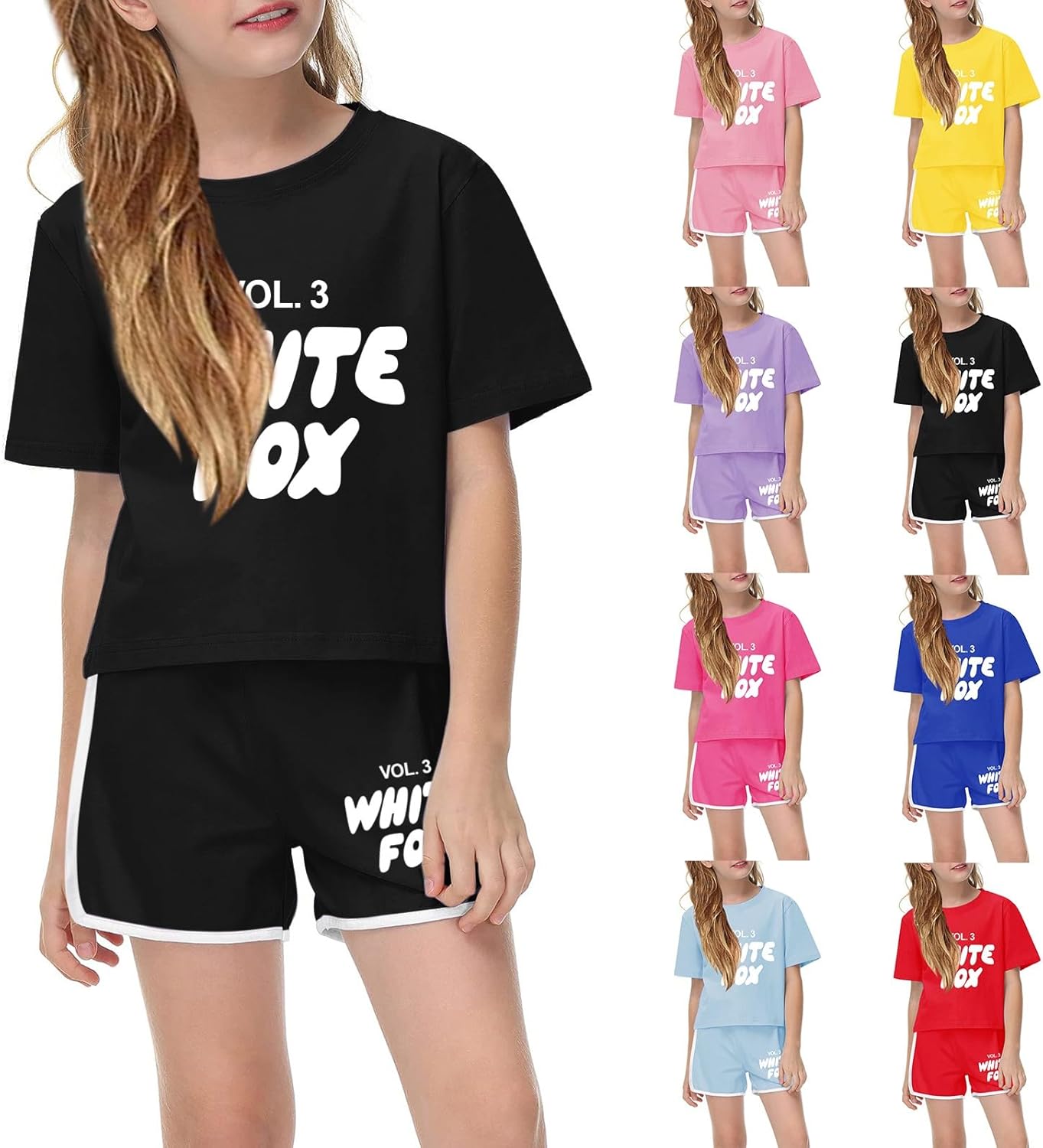 Kids Summer Sport T-Shirt and Shorts 2 Piece Outfit Girls Trendy Tracksuit Set Short Sleeve Fox Letter Print Crop Tops with Jogger Shorts Activewear Preppy Clothing Set