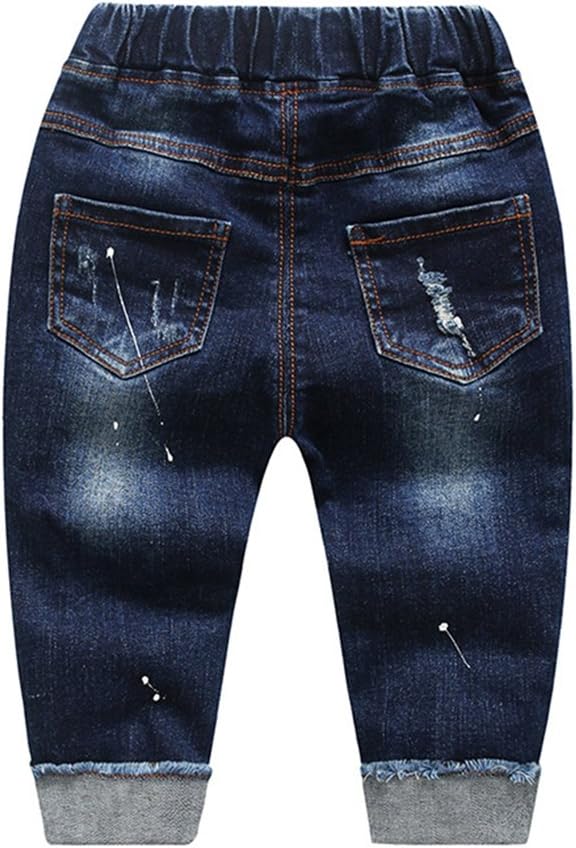 KIDSCOOL SPACE Baby Girl Boy Jeans,Little Kid Elastic Waist Ripped Denim Pants