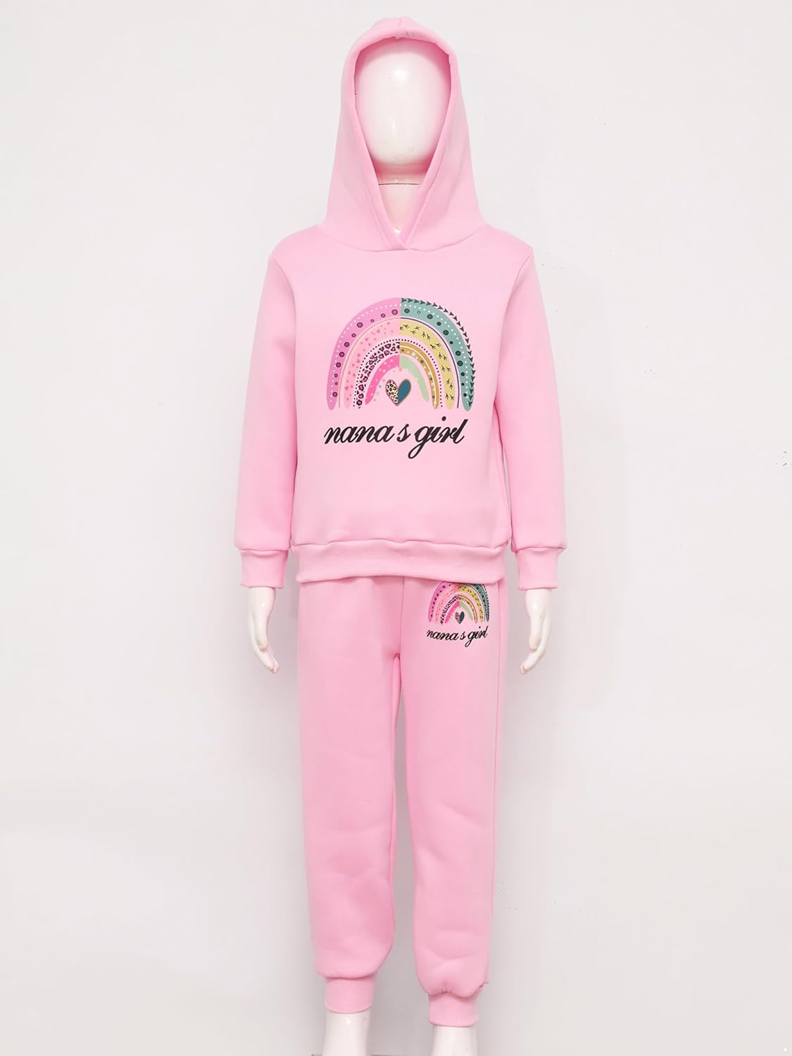 Kvysinly Girls Clothes Rainbow Print Long Sleeve Hoodie Tops with Stretch Pants Spring Fall Winter Outfits