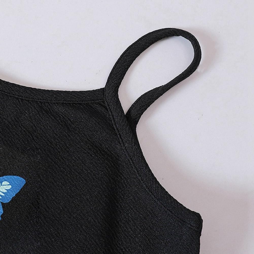 LIKCAISA Girls 2 Piece Outfits Cute Kids Sleeveless Bodycon Cami Dress & Long Sleeve Tops Crop Set for Teen Girls Party Clothes Summer Christmas Clothing Teenage Girls School Preppy Butterfly Dresses
