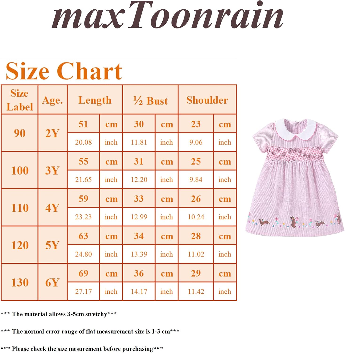 -There are five sizes, 90cm (2 yrs), 100cm (3 yrs), 110cm (4 yrs), 120cm (5 yrs) and 130cm (6yrs). Must have those lovely dresses for your little girls.
