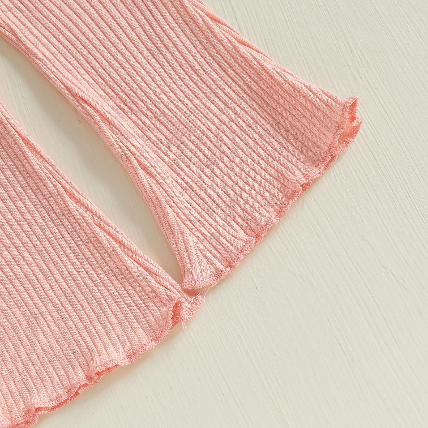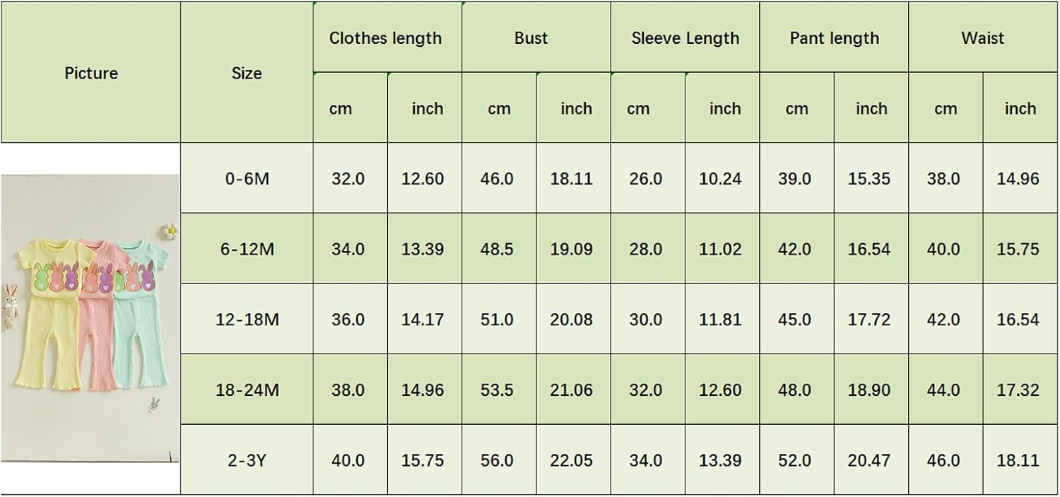 MAHUAOYIXI Toddler Baby Girls Easter Outfits Bunny Print Short Sleeve Ribbed Tops T-shirts with Elastic Waist Flare Pants 2Pcs Set Baby Clothes for Girls