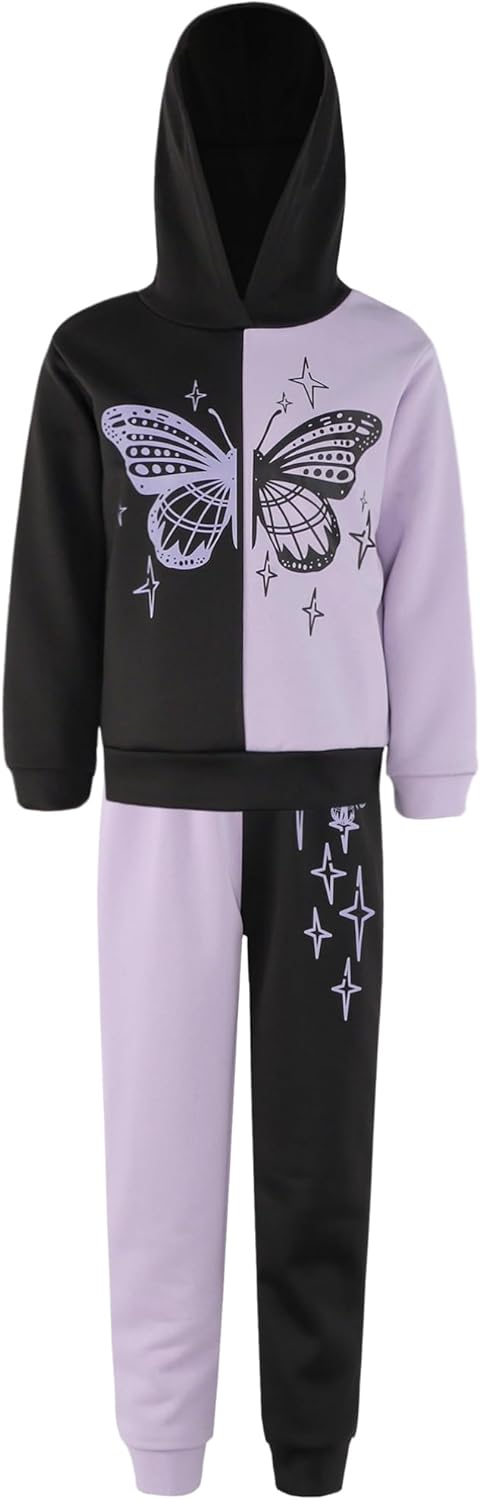 MSemis Kids Girls Butterfly Print Hoodie Sweatshirt with Trousers Clothes Set Fall Winter Warm Outfit