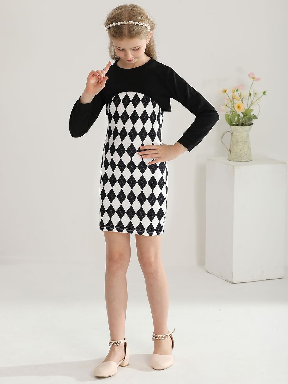 Naiyafly Girl’s 2 Piece Outfits Kids Long Sleeve Crop Top and Cami Dress Set Teen Girls Pullover Sweatshirt + Butterfly/Plaid Print Bodycon Dress Clothes Christmas Party Casual Costumes