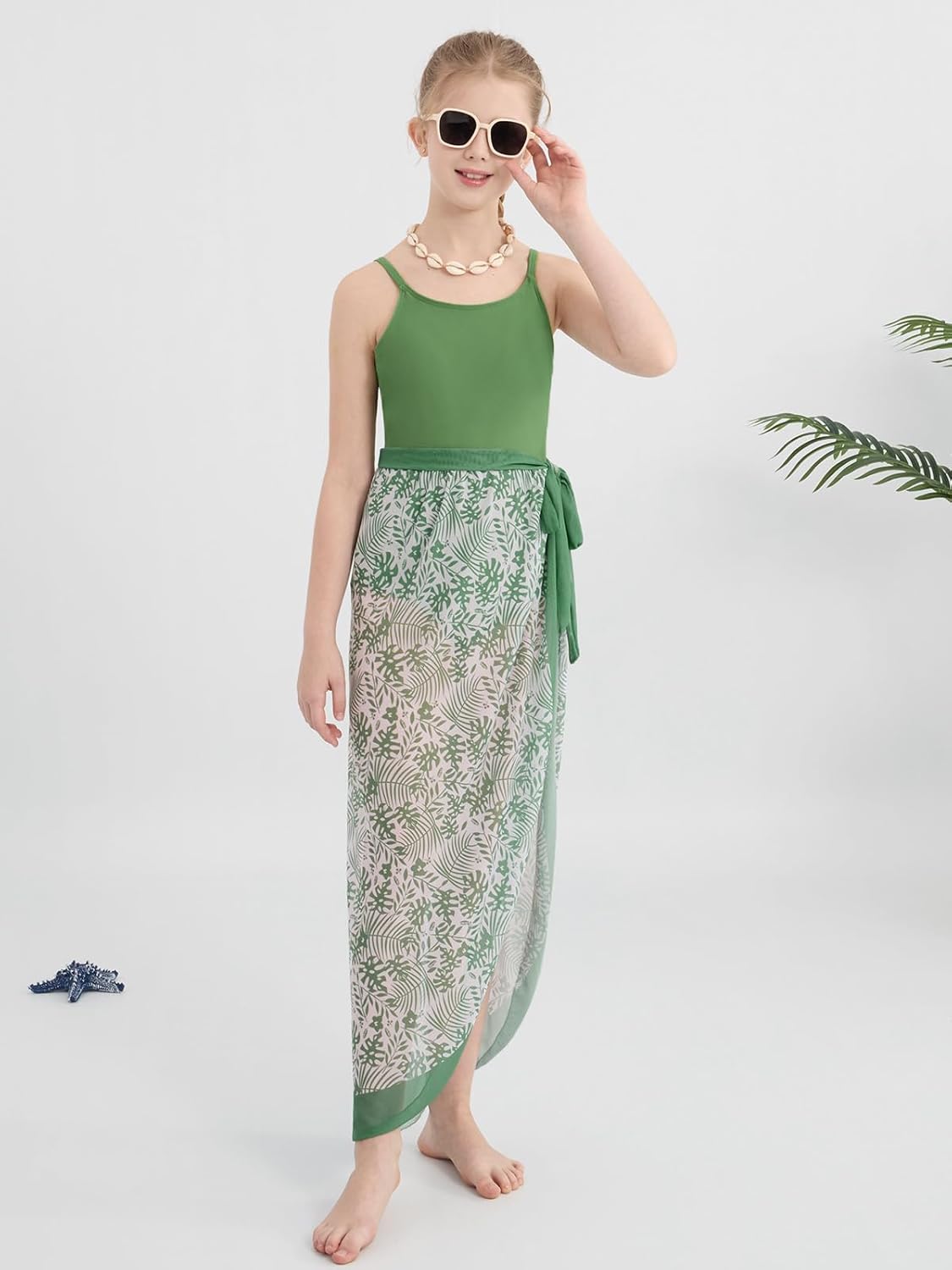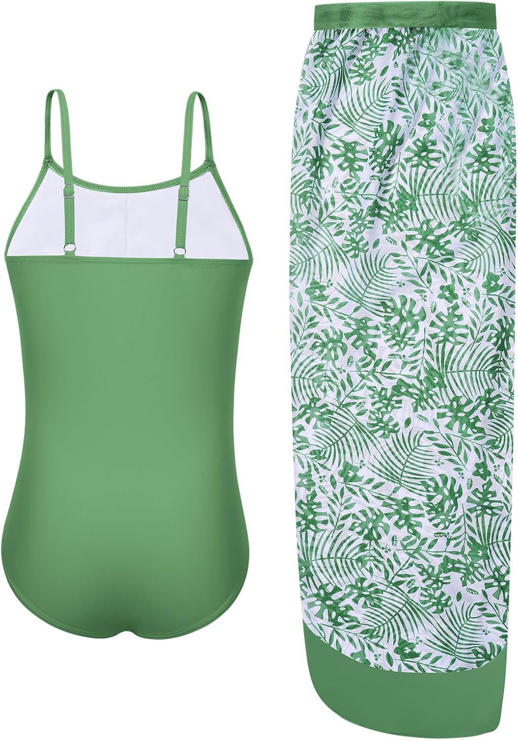 Naiyafly Girls One Piece Swimsuit with Cover Up Wrap Skirt Set Tropical Sequin Girls Swimsuit Cool Printed Bathing Suit Girls Beach Swimwear 9-14 Years