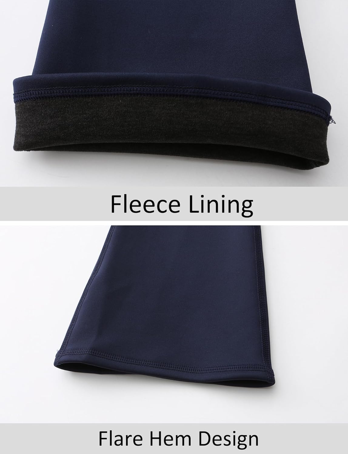 Panegy Girls Fleece Lined Flared Pants Thermal Warm Leggings Stretchy Dance Yoga Bell Bottoms Padded Bootcut Tights Full Length Trousers