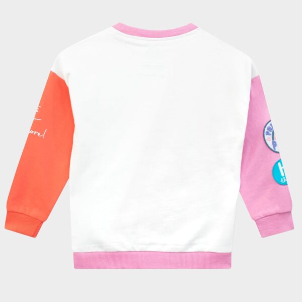 Bring the enchanting world of Paw Patrol to life with our exclusive Girls Paw Patrol Sweatshirt! Infused with vibrant colours and dynamic designs, it’s more than just a sweater; it’s a piece of the Paw Patrol film that your little one can wear. The delightful three-colour design is a playful twist on the traditional kids sweatshirt. With its diagonal split of white and pink across the body, it’s reminiscent of the adventurous spirit of the Paw Patrol girl crew. Not to be outshone, the sleeves, one pink and the other orange, add a splash of fun to the mix. Skye, the beloved character, graces the front of this girls sweater. Split by the colour line, she stands out, accompanied by her name in eye-catching orange and blue. Details matter, and this Paw Patrol long sleeve Skye tshirt is adorned with embroidered patches that showcase its quality. Moreover, the spirited phrase “let’s go explore” etched on the orange sleeve brings out the explorer in every child. Searching for the perfect gifts for girls? Whether it’s for a birthday, Christmas, or celebrating the Paw Patrol movie release, this sweatshirt ticks all the boxes. Every stitch and print is designed to resonate with young fans, making it a stellar addition to their girls clothes collection. Paired with Paw Patrol gifts, Paw Patrol figures, or even a Paw Patrol plush, it’s a bundle of joy waiting to be unwrapped. Your search for the ultimate girls clothing ends here. Make memories, embark on adventures, and let her proudly flaunt her love for Skye and the Paw Patrol team with this unmatched girls jumper.