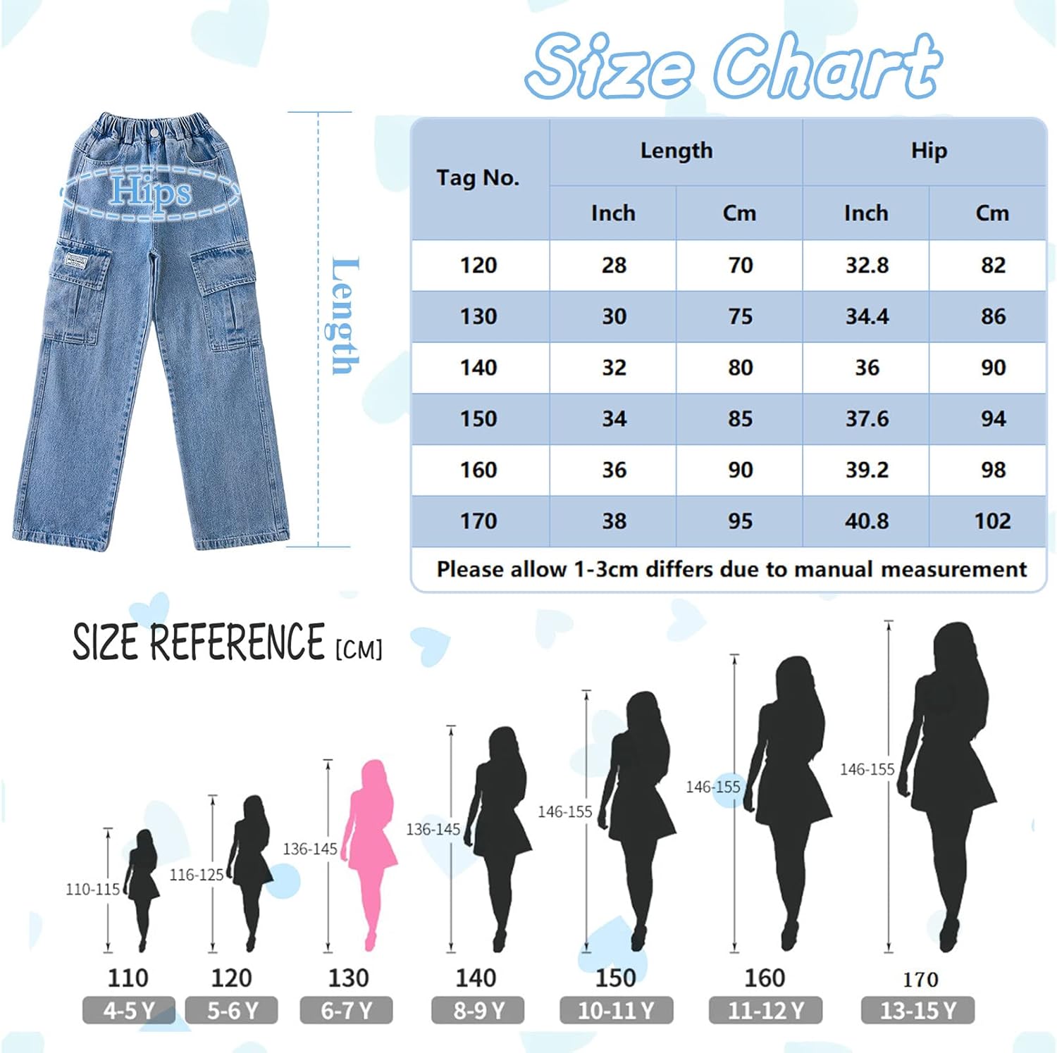 Ripped Jeans for Girls High Elastic Waist Baggy Casual Wide Leg Denim Jeans Fashion Washed Trousers with Pockets Stretchy Vintage Pants Age 5-15 Years