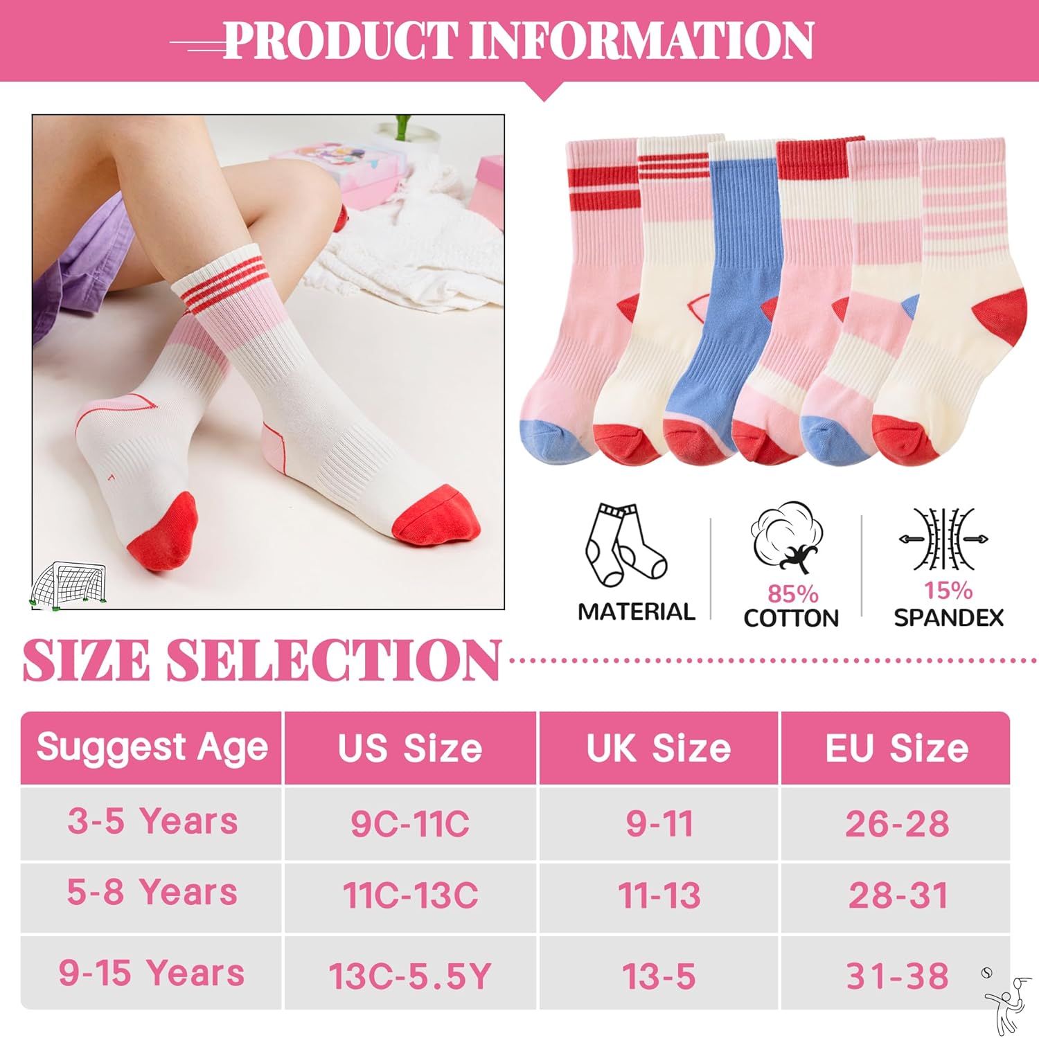 Girls Socks Kids Athletic Crew Sport Cotton Trainer Breathable Calf Softs Socks 6 PairsGirls Socks Kids Athletic Crew Sport Cotton Trainer Breathable Calf Softs Socks 6 Pairs