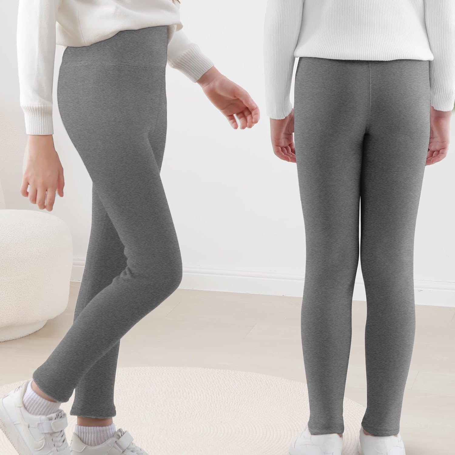 SPFASZEIV Girls Fleece Lined Leggings High Waist Thick Kids Warm Pants Full Length Cotton Leggings for Children Toddler 5-11 Years