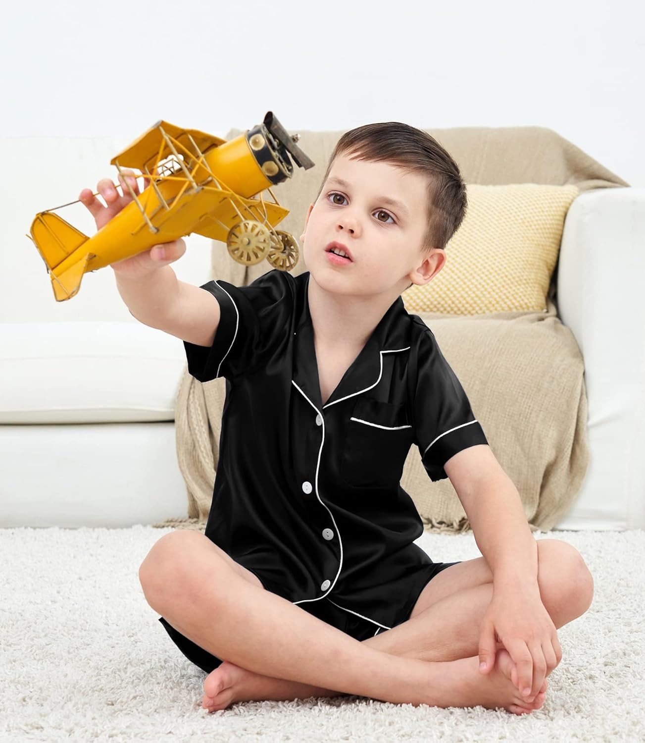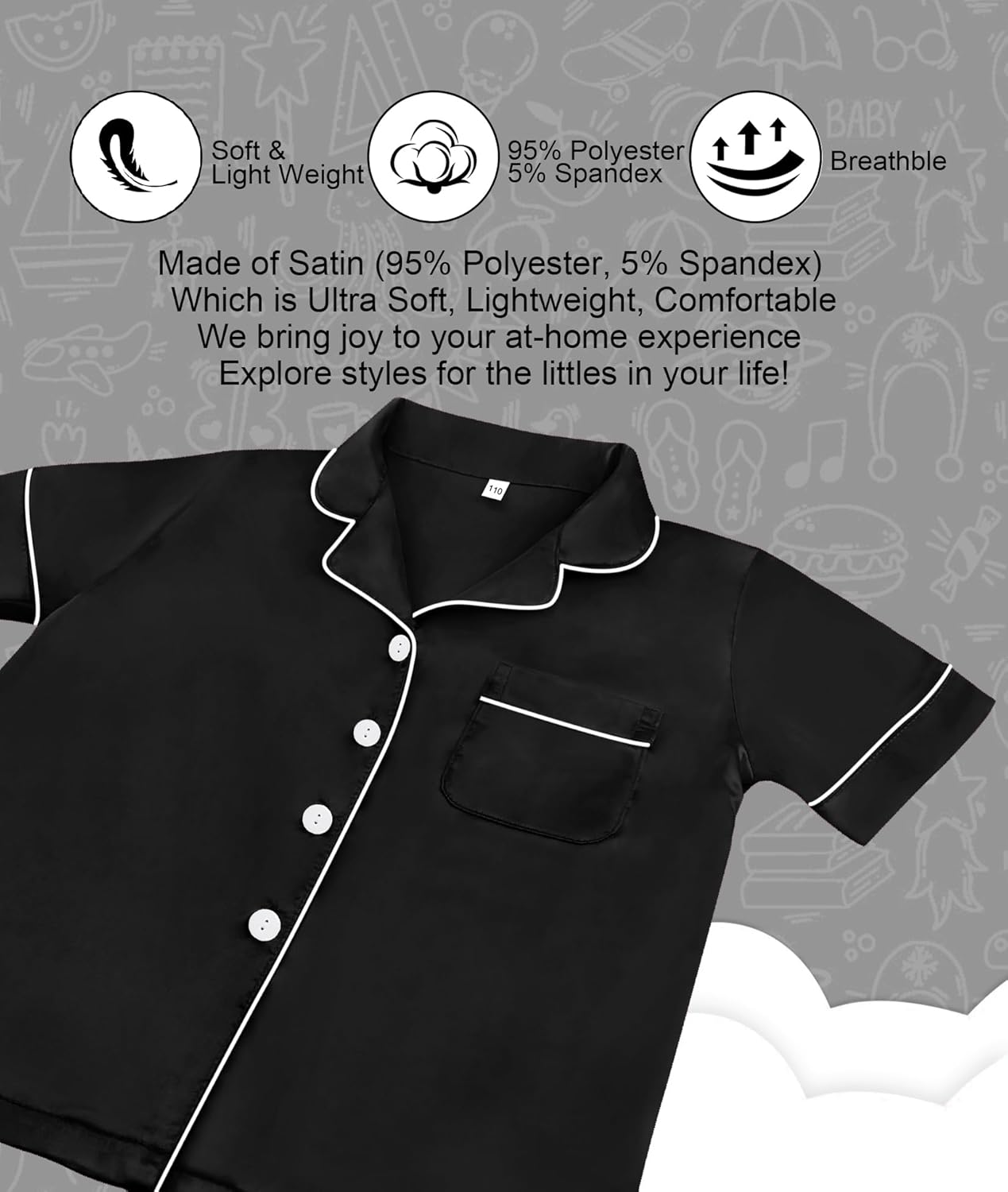 Kid Unisex Girls Boys Silk Pyjamas Set Short Sleeve Button Down Clasic Sleepwear