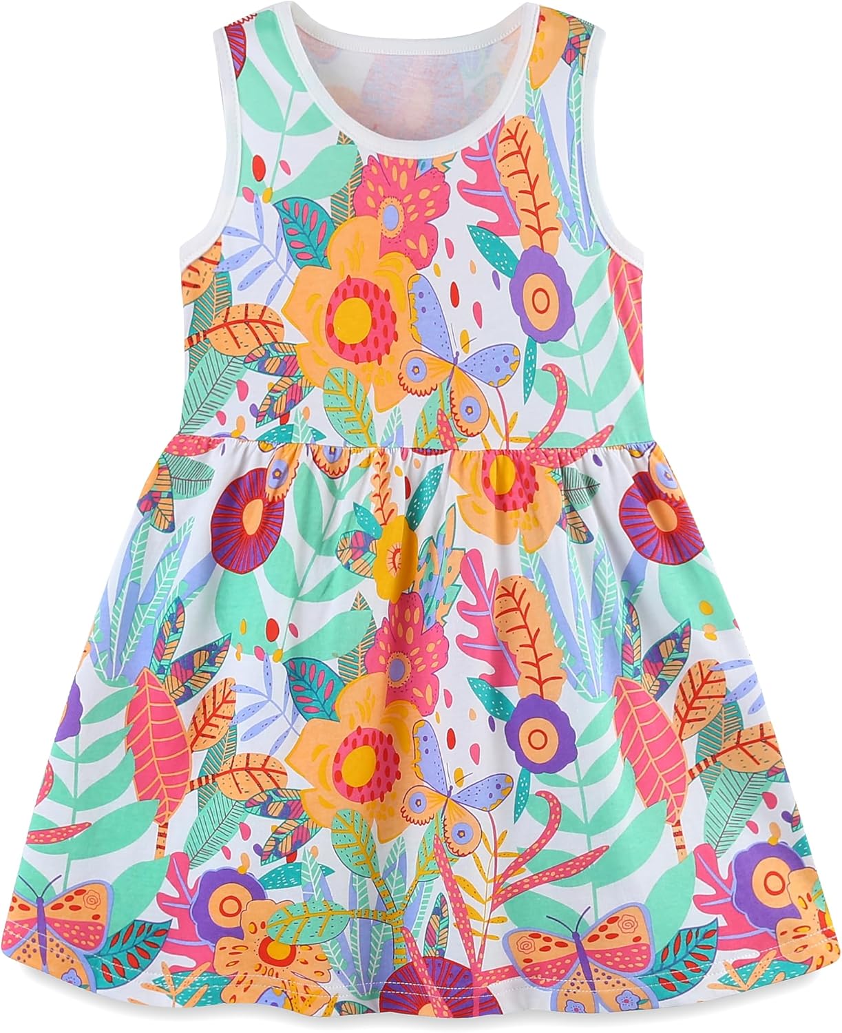 TCWWBB Girls Summer Dresses Unicorn Butterfly Floral Rainbow Casual Dress Cotton Shirt Cartoon Short Sleeve Sleeveless Dress for Kids Age 1-7 Years Old