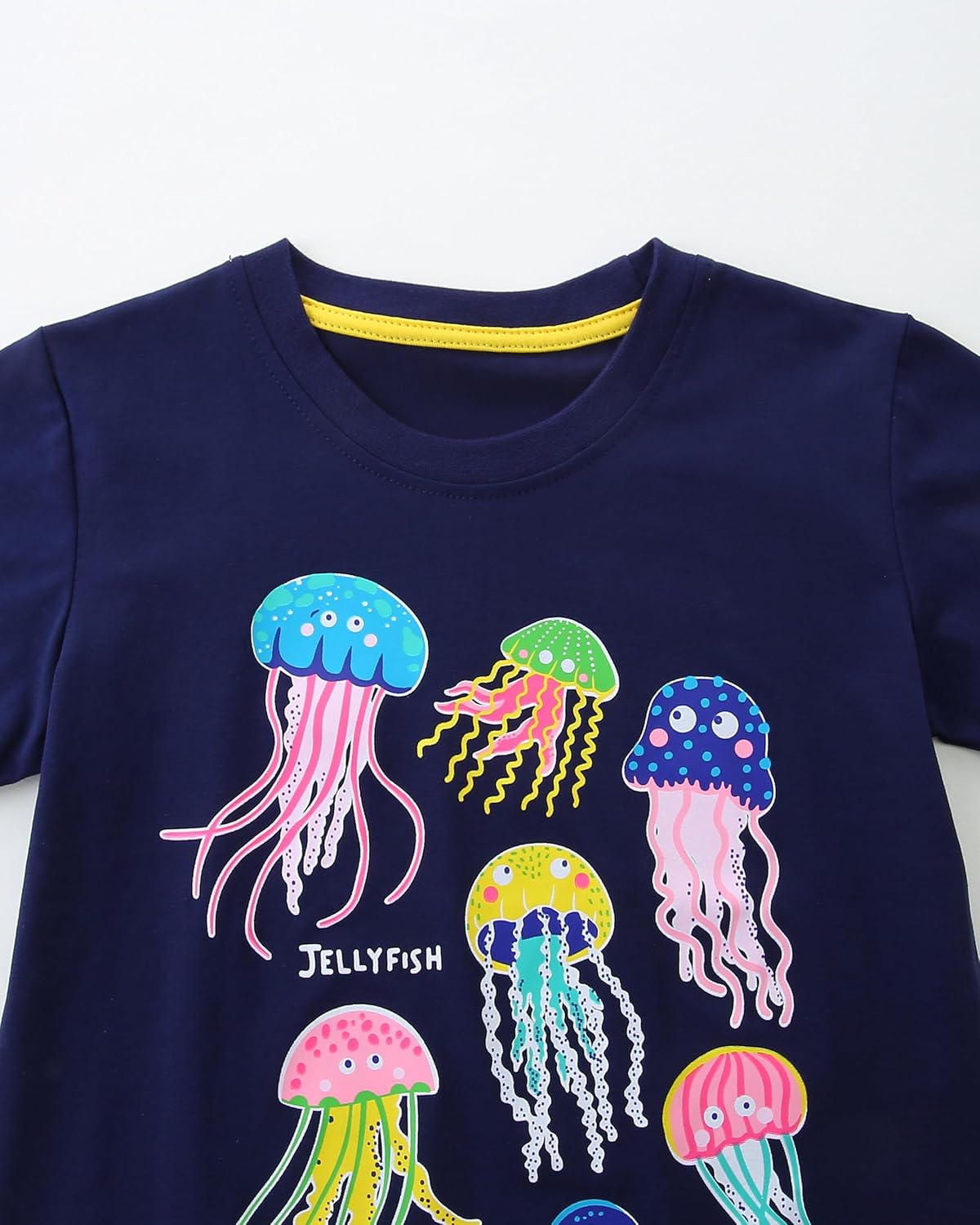 Toddler Girls Summer Short Outfits Clothes Set Kids Cute Unicorn Bunny Rainbow Animal Print Short Sleeve Cotton T-Shirt Tops and Shorts 2 Piece Crewneck Clothing Set Age 1-7 Years Old